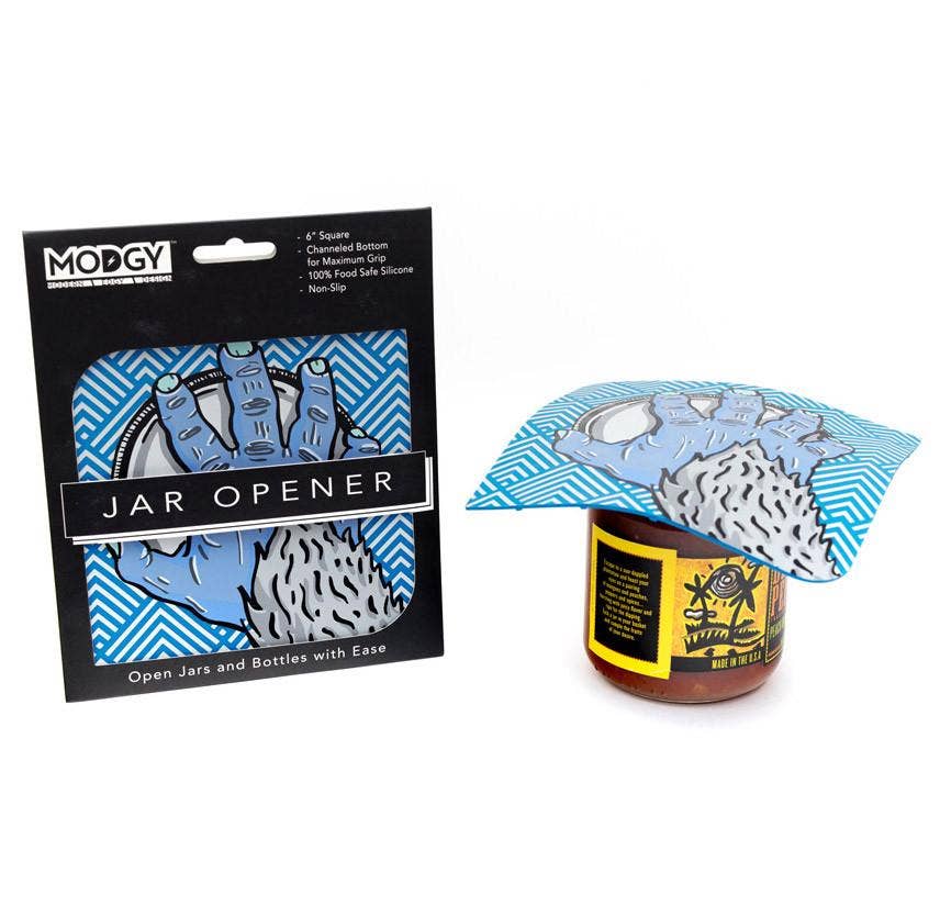 Couvercle coincé ? Nous pouvons vous aider ! Faisant et pratique. C'est ce que sont les nouveaux ouvre-pots de silicium de Modgy. Dans des couleurs festives et des impressions amusantes, les ouvre-pots en silicone Modgy sont fabriqués à partir de silicium super adhérent de qualité alimentaire. Poids : 2,5 oz Dimensions : 6" X 6" Matériaux : 100% Silicone Inclus : un ouvre-pot en silicone avec impression graphique par pochette. Entretien : passe au lave-vaisselle ou à la main avec de l'eau chaude savonneuse.