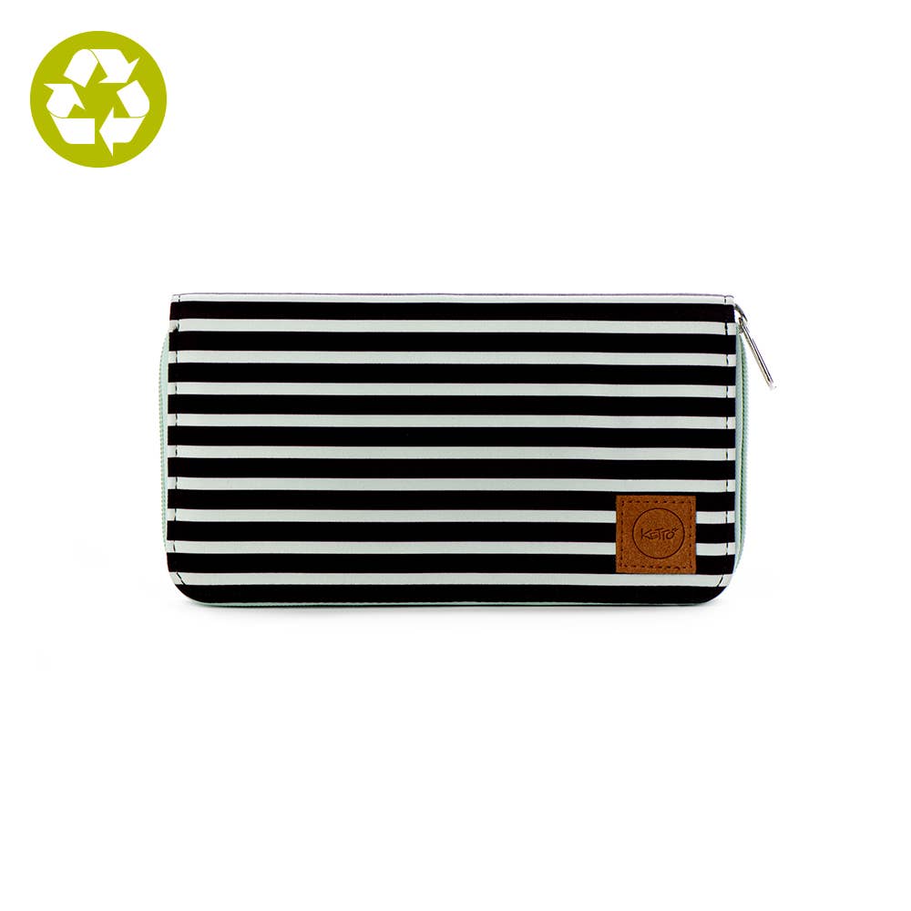 Poche intérieure avec fermeture à glissière de haute qualité pour les pièces. Grande capacité : 28 compartiments : quatre compartiments pour billets. Quatorze compartiments pour cartes. Fermeture zippée : la fermeture éclair robuste fonctionne parfaitement et maintient la structure en toute sécurité. Le tissu extérieur de ce produit est fabriqué à partir de bouteilles en plastique recyclées à 100 %, ce qui le rend solide, imperméable et recyclable.