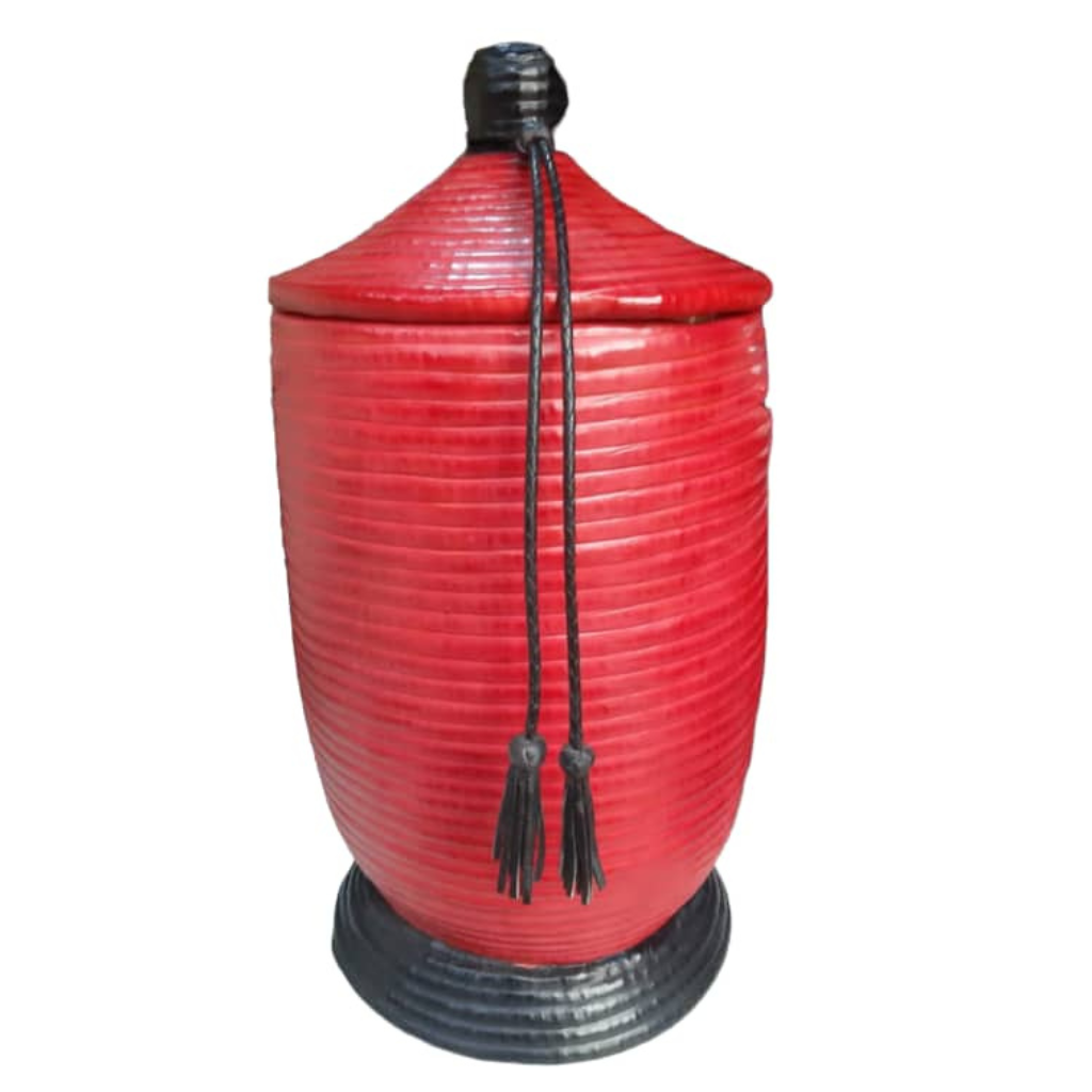 Le panier artisanal « Ndiaye » apporte une touche de soleil et de joie à votre intérieur grâce à sa couleur jaune éclatante. Enveloppé de cuir robuste, ce magnifique panier allie l’artisanat traditionnel sénégalais à une fonctionnalité moderne. Son design artistique et sa fabrication soignée en font un compagnon polyvalent, que ce soit pour ranger des couvertures, le linge ou comme élément décoratif dans votre salon. Fabriqué à partir de matériaux durables tels que l’herbe et le plastique recyclé, chaque panier « Ndiaye » est confectionné avec amour par des artisans talentueux au Sénégal. Les poignées latérales facilitent son transport, tandis que le couvercle ajusté protège le contenu de la poussière et des regards indiscrets.