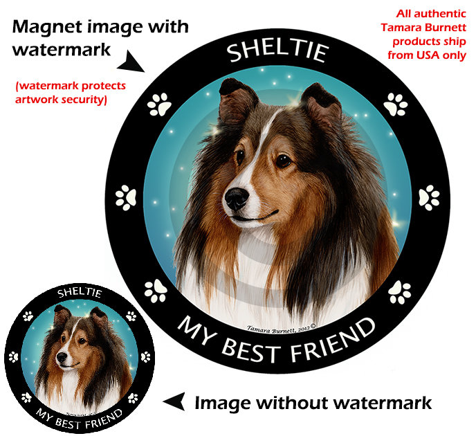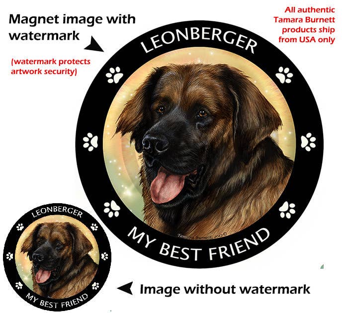 Aimant circulaire spécifique à la race mettant en vedette l'œuvre de l'artiste renommée Tamara Burnett.