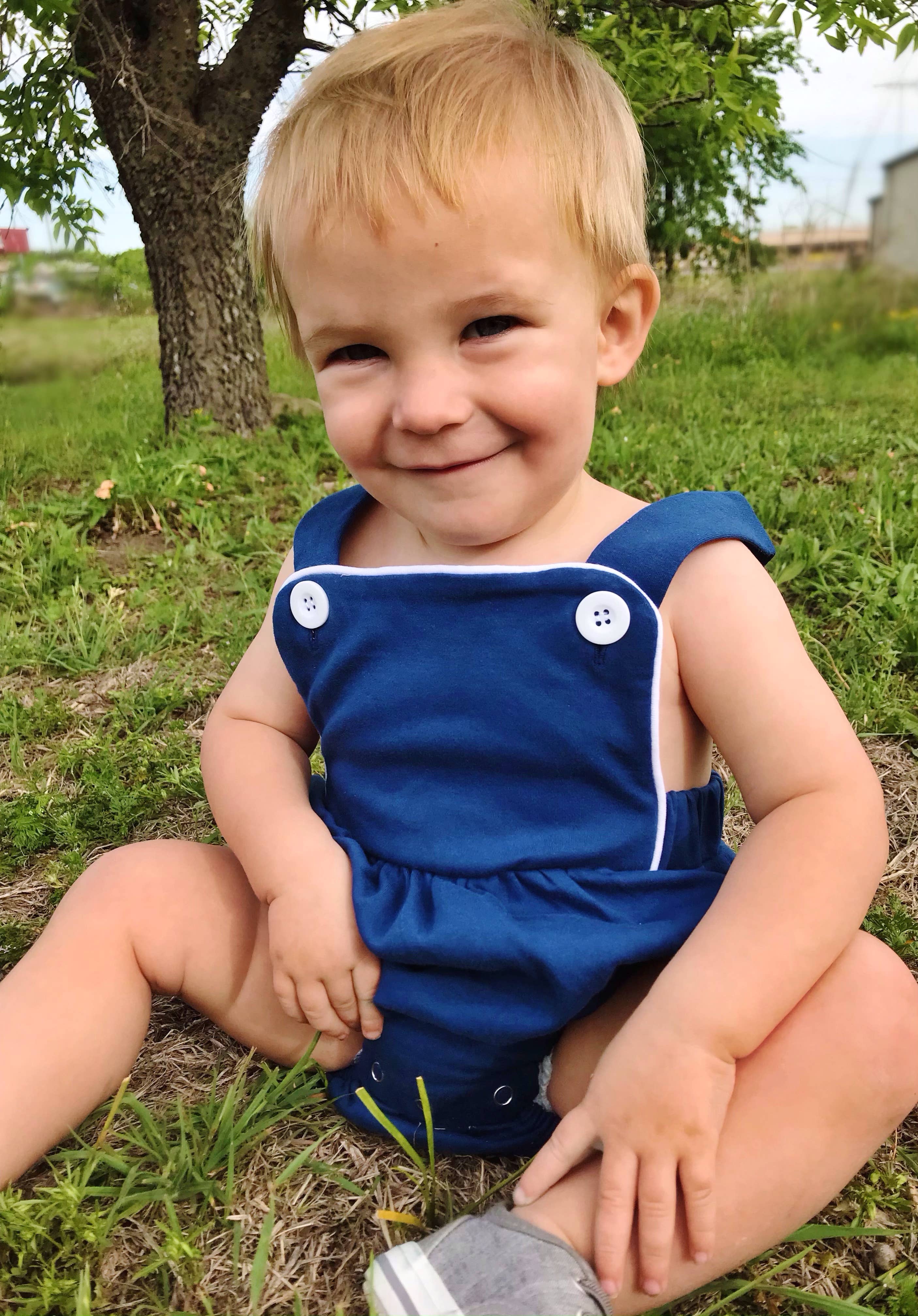 Maillot de soleil en tricot unisexe 100 % coton Il s'agit d'un tricot de coton Élastique dans l'ouverture des jambes Pronotements à l'entrejambe Boutons aux bretelles Notre maillot unisexe en tricot est SOOO CUTE. Il se boutonne à l'entrejambe et boutons sur les bretelles. Il a également un élastique dans les ouvertures des jambes. Ce serait super mignon pour le 4 juillet, Pâques et autres réunions d'été/printemps