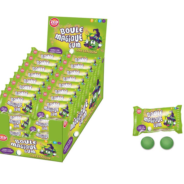 Boules Magiques - Goût Cola Voici le grand retour des Boules Magiques, les bonbons cultes des années 80 ! Ces célèbres billes, qui surprennent à chaque bouchée en changeant de goût et de couleur, renferment un délicieux cœur de bubble gum. Chaque étui contient 2 boules généreuses de 22 mm de diamètre, parfaites pour revivre la nostalgie sucrée de votre enfance.