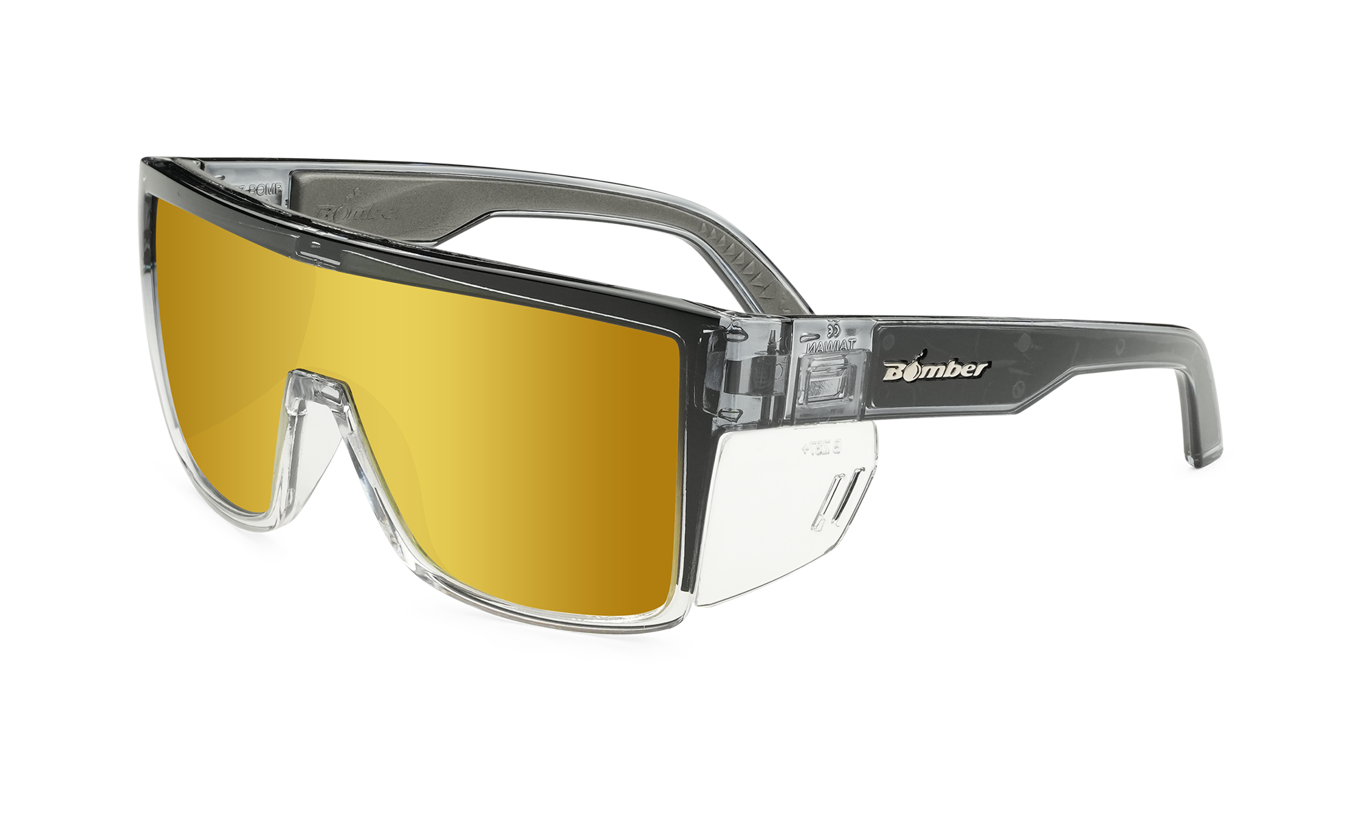 #JB103GLD Présentation du Jager-Bomb : là où la sécurité rencontre le style avec la dernière innovation de Bomber Eyewear Reflétant la vision futuriste de la conception axée sur la performance de Bomber Eyewear, notre dernière création, le Jager-Bomb, est prête à redéfinir le monde des lunettes de sécurité. Ces lunettes de soleil de sécurité non seulement respectent les normes ANSI Z87+ pour le travail sur site, mais encapsulent également l'essence même de l'attrait de la mode sportive. Excellence en polycarbonate : Conçues avec précision, les lunettes de sécurité Jager-Bomb sont dotées de montures et de verres en polycarbonate. Cette combinaison gagnante assure une durabilité maximale sans compromettre le style. La sécurité rencontre le style : Au cœur de cette innovation en matière de lunettes se trouve l'engagement à défier le statu quo.