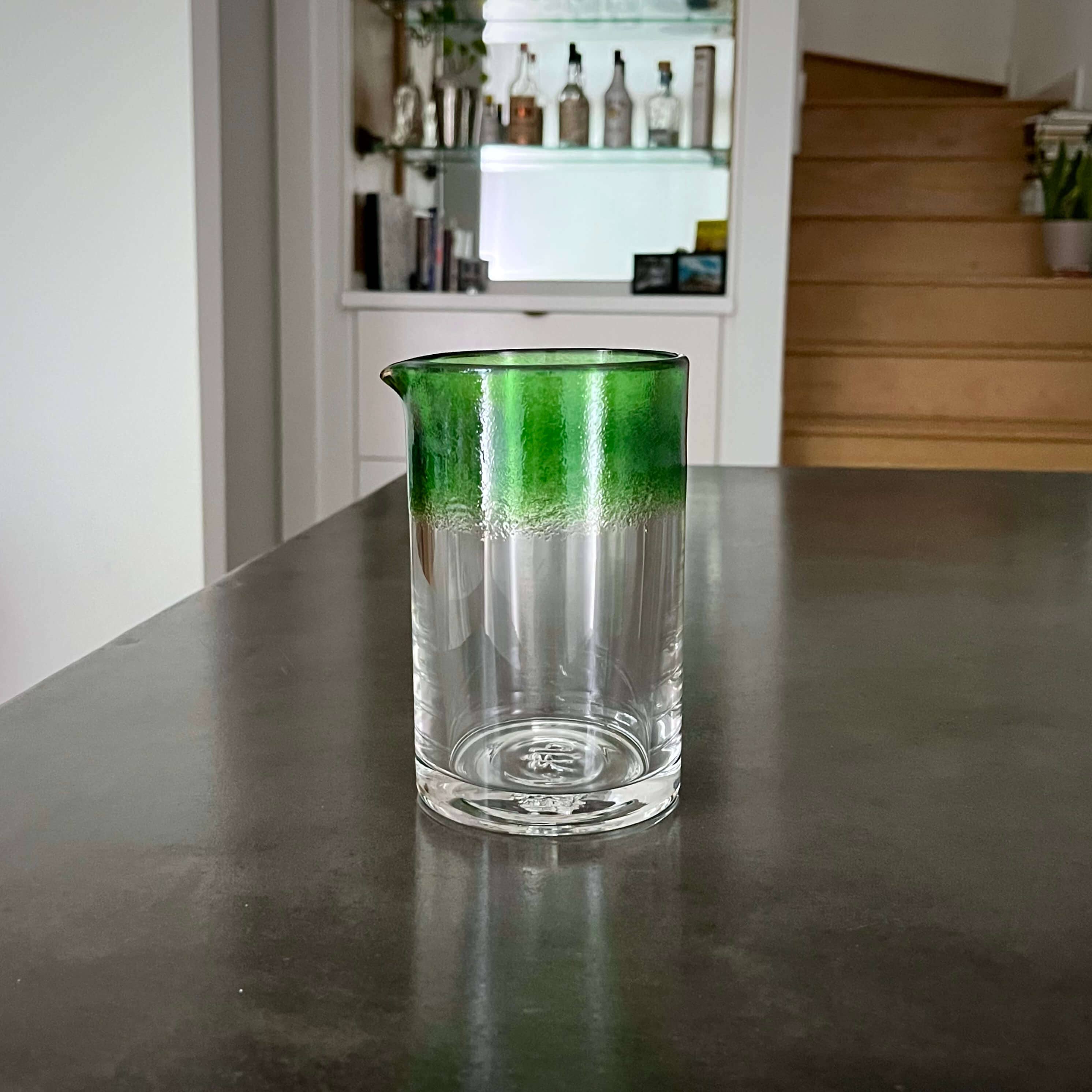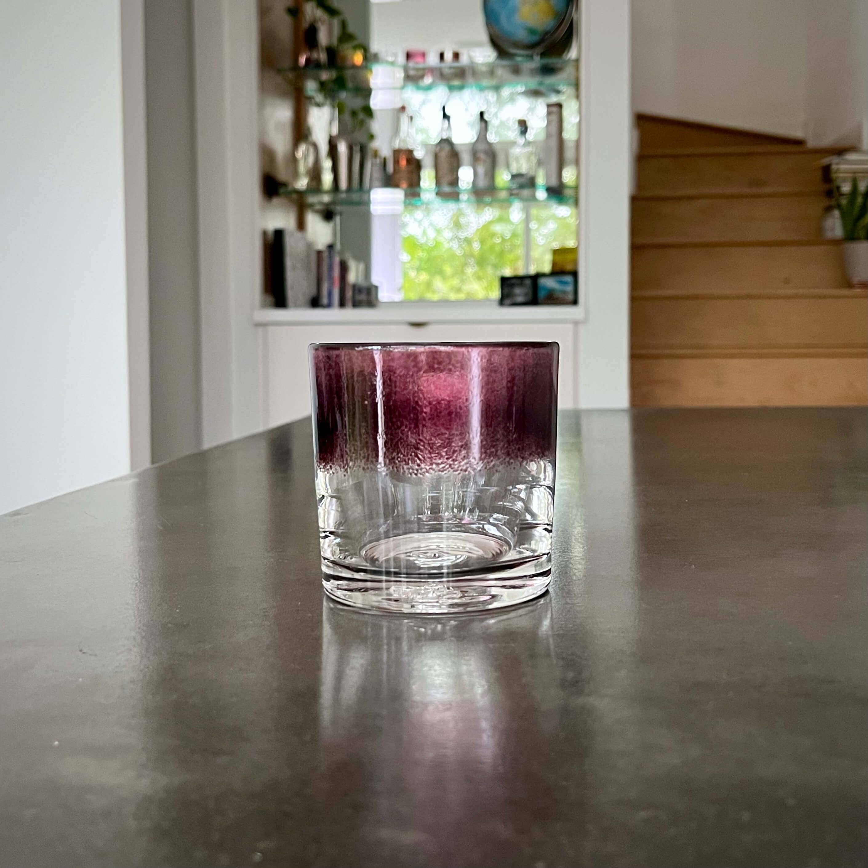Ce verre à cocktail classique est conçu pour être fonctionnel avec une base robuste et est orné d'une élégante bande de couleur violette. Un outil spécial est utilisé pour former le bec verseur pour un versement en douceur. Cuillères à mélanger et verres à whisky vendus séparément*** - 500 ml • Passe au lave-vaisselle • Fait main • Verre à 100% sodocalcique • Fabriqué aux États-Unis • Timbre de signature d'artiste • Résistant aux UV (la couleur du verre ne se décolore jamais)