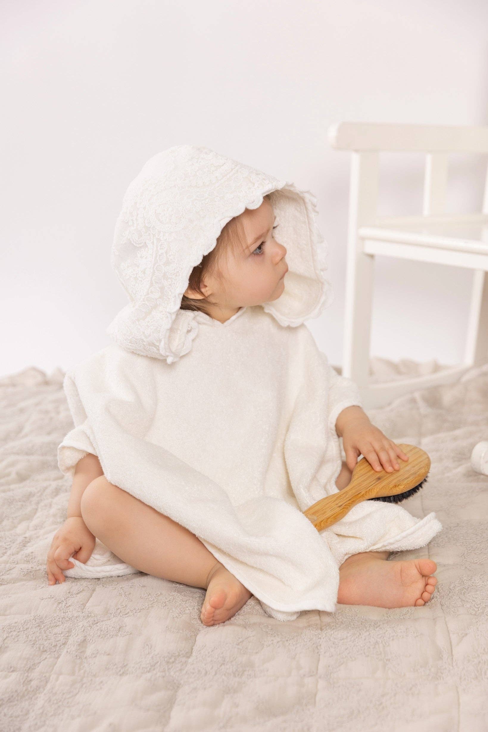 Peignoir Versailles en éponge douce orné de dentelle en vente B2B