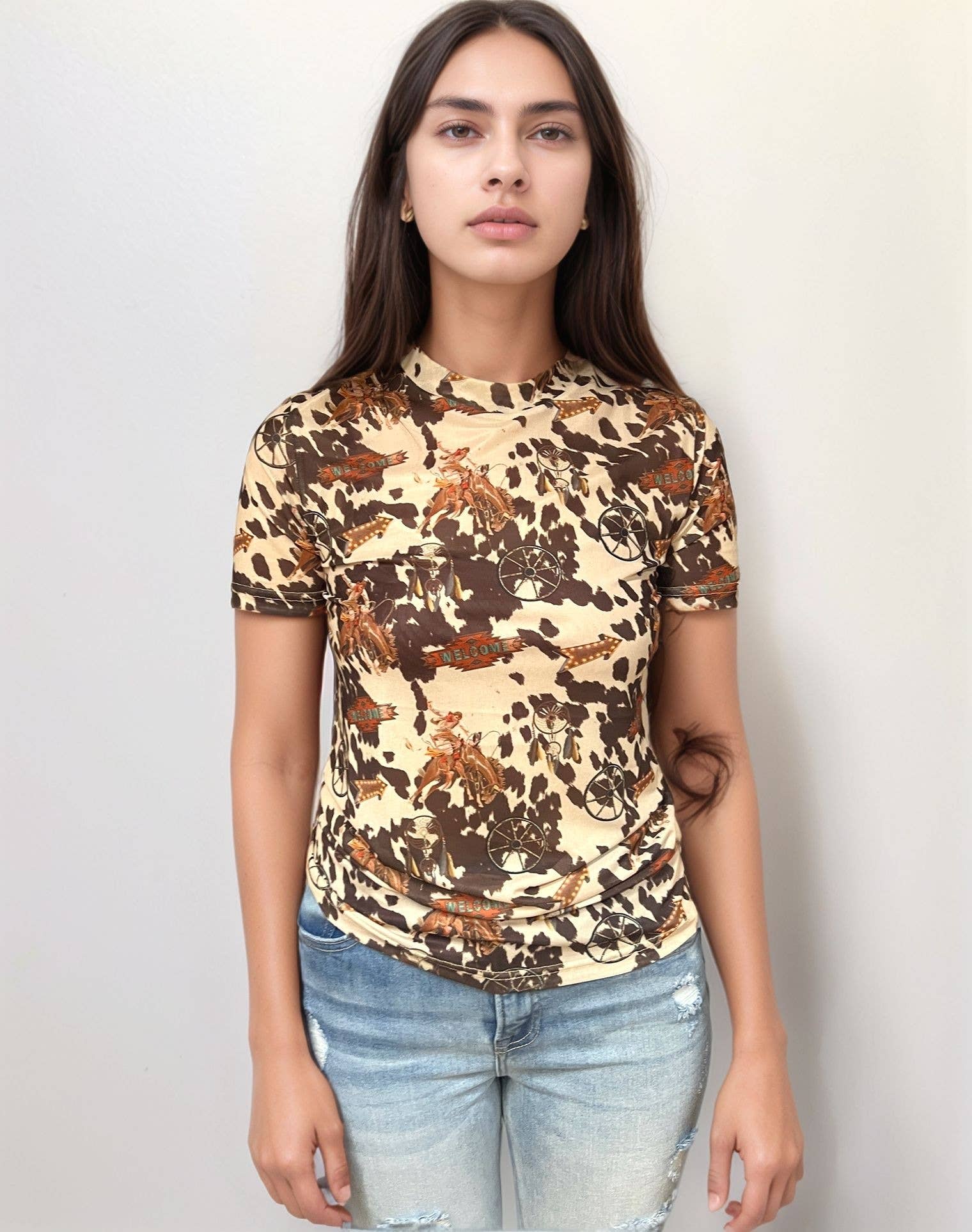 Un incontournable western intemporel avec une touche moderne, cette chemise en jean à boutons pression en perles présente un empiècement en faux daim contrastant d'un riche brun caramel. Conçue avec des boutons pression en perles classiques sur le devant et aux poignets, elle est le parfait mélange de robuste et de chic. Portez-la par-dessus un t-shirt pour un look décontracté ou habillez-la avec des bottes et des bijoux pour les soirées de rodéo et les concerts.