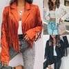 Nous n'avons pas aimé le tissu, le style ou la taille de la veste. Il semble que si l'on accroche une des franges à quelque chose, elle pourrait facilement se détacher.