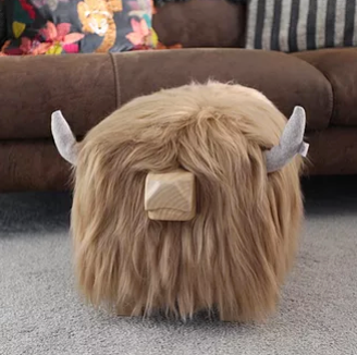 Repose-pieds Highland Bull - 'Highland Bull' - HONEY+ANNEAU DE NEZ — Repose-pieds Highland Bull Design - Idée cadeau - Cadeaux écossais — Repose-pieds Highland Bull entièrement rembourré à la main, solide et durable. — Recouvert d'une peau de mouton islandaise véritable couleur miel. (Une nuance blonde chaude). — -Pieds en bois massif. -Cornes ajustables en tweed. -Museau en bois massif fini à la main avec anneau de nez. Porte-nom gratuit - Ils peuvent être ajoutés à la commande sur demande. — Tous les repose-pieds peuvent être très variés et vous pouvez recevoir une peau de mouton sensiblement unique par rapport à la peau de mouton montrée sur les photos du produit. Veuillez noter que tous les repose-pieds peuvent être photographiés différemment et peuvent ne pas être identiques aux photos ; les photos du produit sont prises à la lumière du jour. — Dimensions : 53,5 x 35,5 x 35,5 cm Peau de mouton véritable U.S.P. | 100 % bois dur | Cornes en tweed doux | Fabriqué en Écosse.