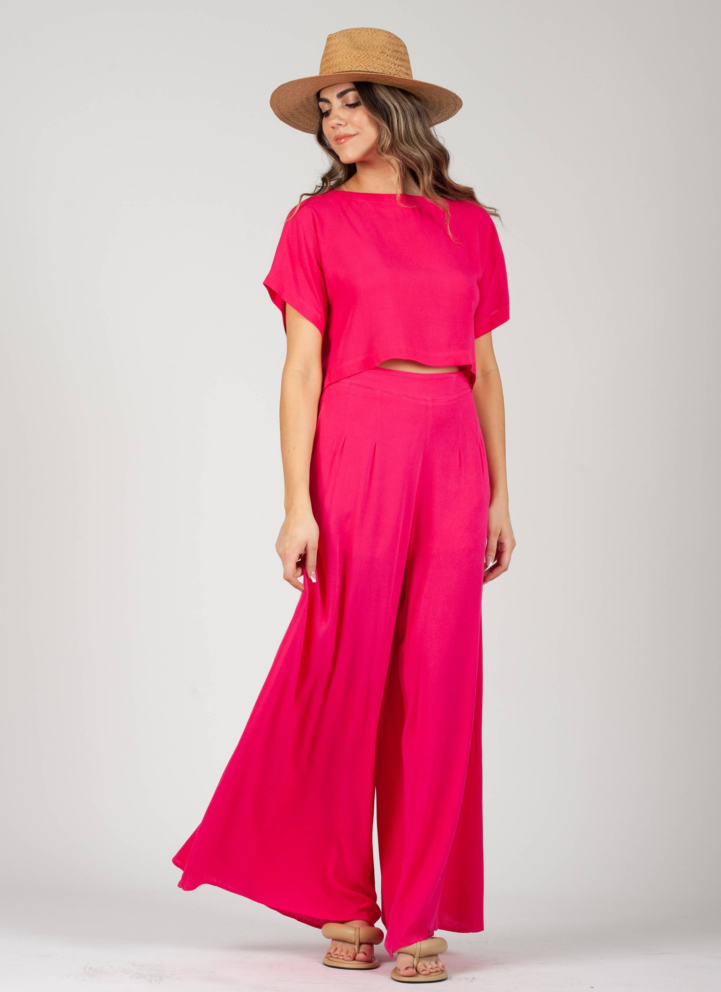 Pantalon frais fluide en rayonne douce, jambes larges et fuselées, taille haute. Portez-le avec le Top LCT5478 pour un look complet ! Achetez-le en kit pour bénéficier d'une offre exceptionnelle ! MODÈLE : LCB1181 *HAUT ASSORTI LCT5478 *AMBIANCE BOHÈME ET FESTIVE !