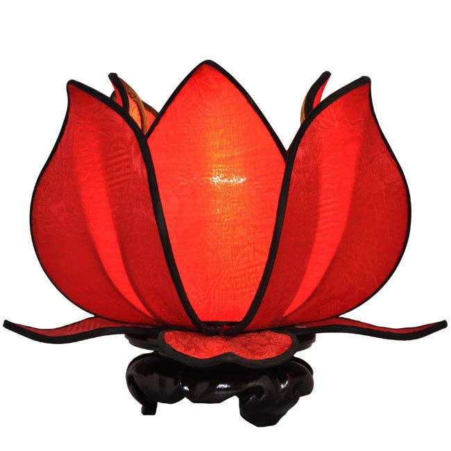 Le lotus en fleur est censé représenter le progrès individuel vers l'illumination. Om Gallery a pris cet ancien symbole d'harmonie et l'a transformé en une superbe lampe de table en soie. Fabriquée avec un cadre en acier durable, de la soie de haute qualité et perchée sur une base en bois d'ébène, la lampe de table Om Gallery Silk Blooming Lotus est le complément parfait pour n'importe quelle pièce de la maison ou comme cadeau pour les personnes spirituelles, métaphysiques, Feng Shui, Yoga, éclairées et créatives. Histoire derrière l'art Cette lampe est fabriquée dans un village près de Ho Chi Minh Ville (Saigon) sous la direction de M. Hiue Chau et de sa famille. L'entreprise familiale Chau soutient de nombreux artisans talentueux dans le village et la région environnante. Une partie des recettes de chaque lampe est reversée pour financer des services de santé et des opportunités éducatives pour les artisans et leurs familles employés dans la fabrication de cette lampe. Grâce à votre achat de ce produit, vous contribuez à leur subsistance. Les lanternes en soie d'Om Gallery établissent un équilibre délicat entre mode et fonctionnalité. Fabriquée à la main par des artisans, chaque lanterne en soie a le caractère unique que l'on attend d'un produit équitable, non fabriqué en usine. Caractéristiques du produit * Fabriqué en soie, métal et bois d'ébène * Comprend un cordon lumineux de 6 pieds avec interrupteur marche/arrêt * Pour de meilleurs résultats, nous recommandons d'utiliser une ampoule en verre claire de 40 watts ou moins (non incluse) * La lampe mesure 10 pouces de hauteur x 12 pouces de diamètre