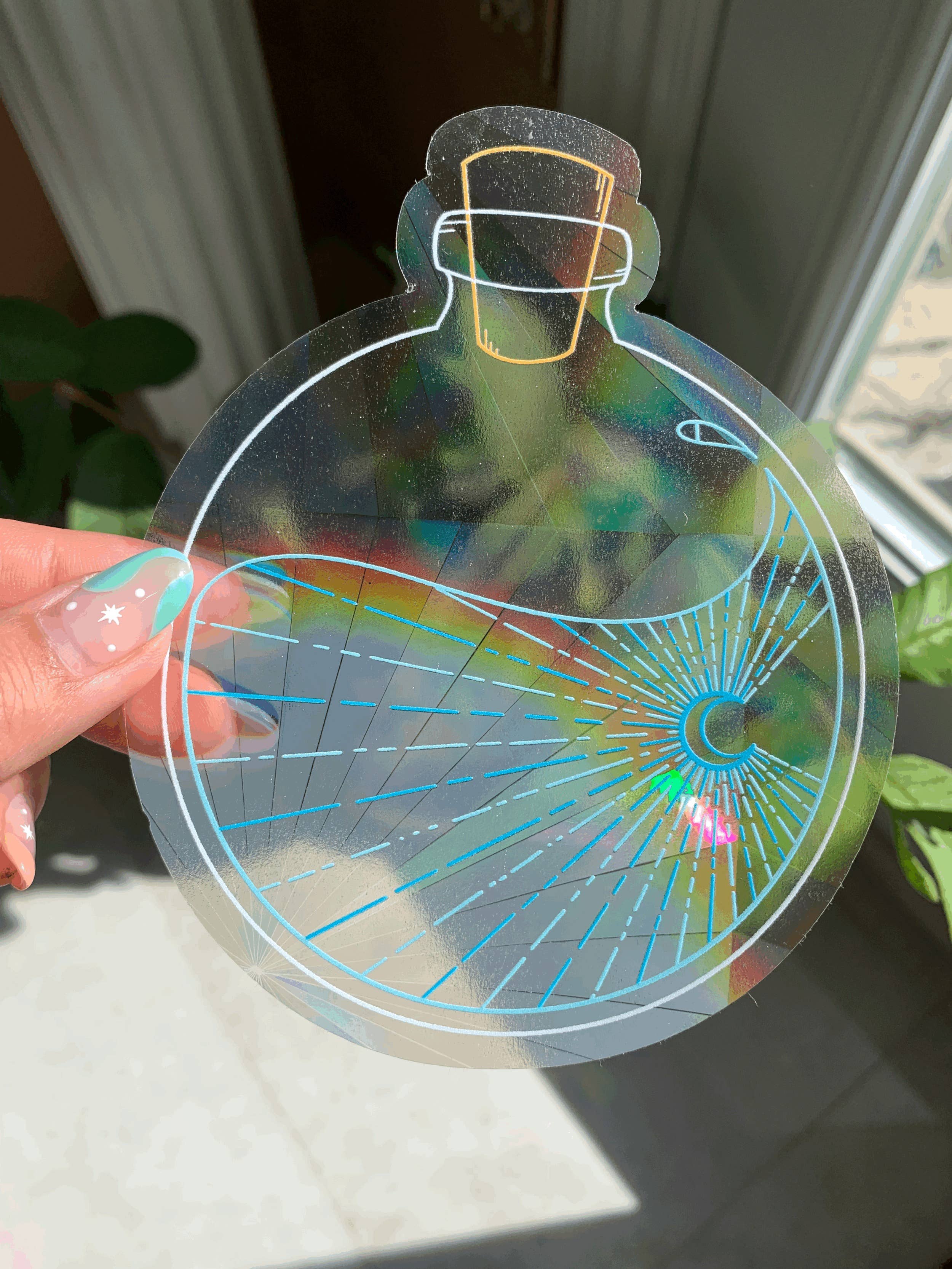 Sun Catcher 💐 amovible Appliqué sur toute surface plane transparente exposée à la lumière directe du soleil, il créera des arcs-en-ciel Je l'ai fait parce que qui ne pourrait pas faire avec d'autres ✨ et 🌈 dans sa vie ? Lumière lunaire : 12,7 cm x 8,4 cm (5 x 3,3 po) Facile à appliquer Dessiné, écrit à la main et conçu par moi:) Emballé individuellement avec une carte support et une carte d'entretien dans un sac en cellophane INSTRUCTIONS D'ENTRETIEN : 1. Nettoyez la surface sur laquelle vous souhaitez placer votre capteur de soleil, assurez-vous qu'elle est exempte de poussière. 2. Décollez l'autocollant et placez le côté adhésif sur la surface nettoyée et sèche. 3. Appliquez sur une surface propre en utilisant un carton épais pour éliminer les éventuelles bulles d'air. 4. Profitez des ✨ et 🌈. 5. Pour retirer l'autocollant, décollez-le doucement. S'il reste des résidus, un peu de nettoyant pour vitres fera l'affaire. Toutes les images de designs et de produits sont ©2022 xovickyvu