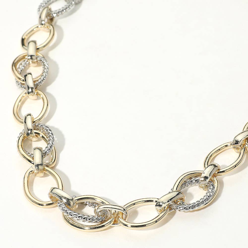 Collier à maillons avec fermoir à bascule en métal plaqué or 14K