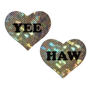 Love : « YEE HAW » en pasties en forme de cœur disco noir sur or