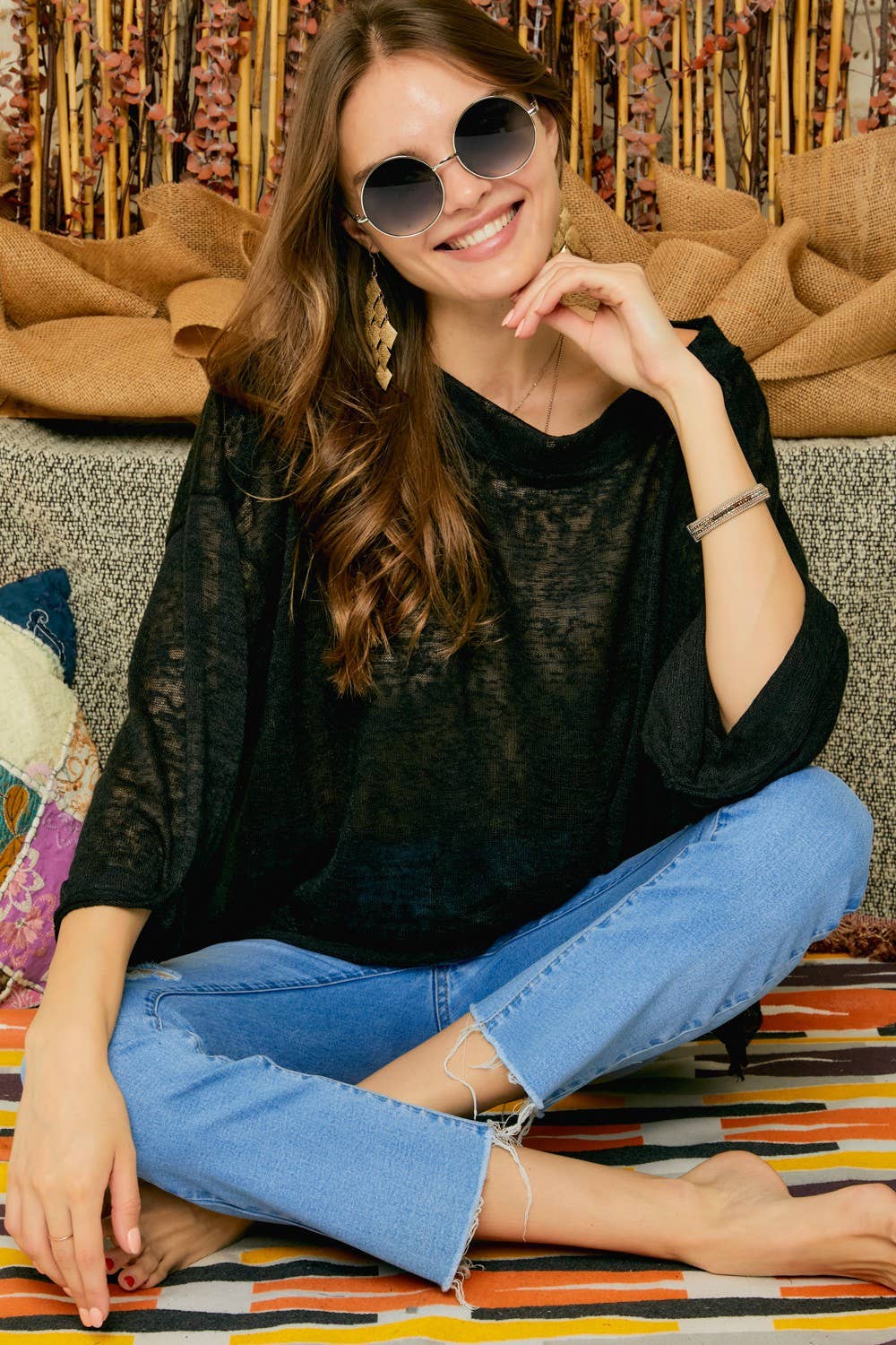 CET3562WN - CHEMISIER BOHÈME À FRONCLES EN CACHEMIRE