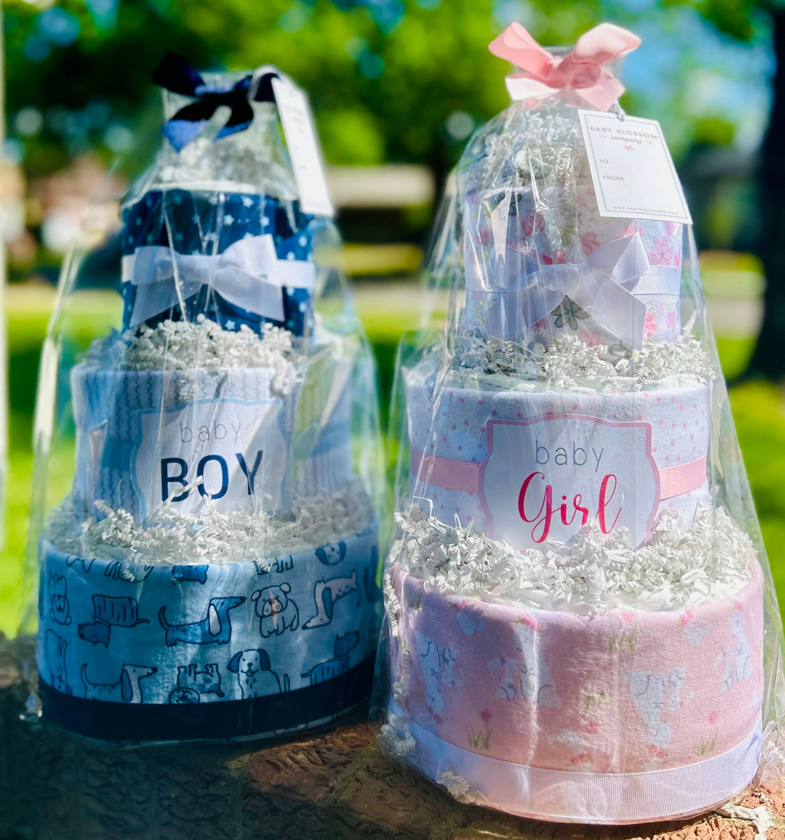 Célébrez la nouvelle maman ou future maman de la meilleure façon possible avec ce gâteau de couches à la fois pratique et absolument adorable ! Ingrédients : - 33 couches jetables Pampers Swaddlers (taille 1) - 3 couvertures d'accueil en flanelle de coton (30 x 30 pouces / 76 x 76 cm) Les gâteaux sont emballés dans du cellophane et attachés avec un ruban. Une étiquette cadeau indiquant le contenu se trouve au dos. Ce gâteau mesure 23 cm de large et 36 cm de haut. Veuillez noter que Pampers a mis à jour ses motifs de couches pour 2022. Le nouveau motif présente une très légère touche de gris clair sur la couche.