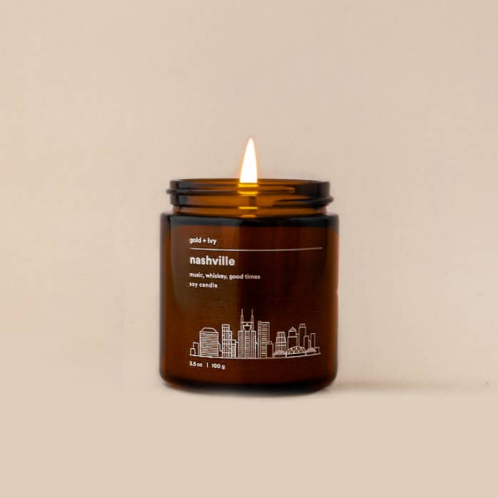 notes de pot : musique, whisky, bons moments notes parfumées : mousse de chêne, ambre, orange Notre bougie Nashville est fabriquée avec notre parfum le plus vendu, la mousse de chêne et l'ambre. Avec des notes de mousse de chêne, d'ambre et d'orange vif, cette bougie vous enveloppera de musique, de whisky et de bons moments ! *disponible uniquement en format standard de 7,5 oz Nos bougies standard sont coulées à la main dans des bocaux en verre ambré avec des étiquettes minimalistes modernes et un couvercle en métal noir. La bougie standard est notre taille la plus populaire et convient parfaitement aux tables basses, aux tables de chevet, aux comptoirs, pratiquement partout ! || Nt. Poids 7,5 oz || Durée de combustion : 45 à 50 heures coulé à la main à Nashville, Tennessee