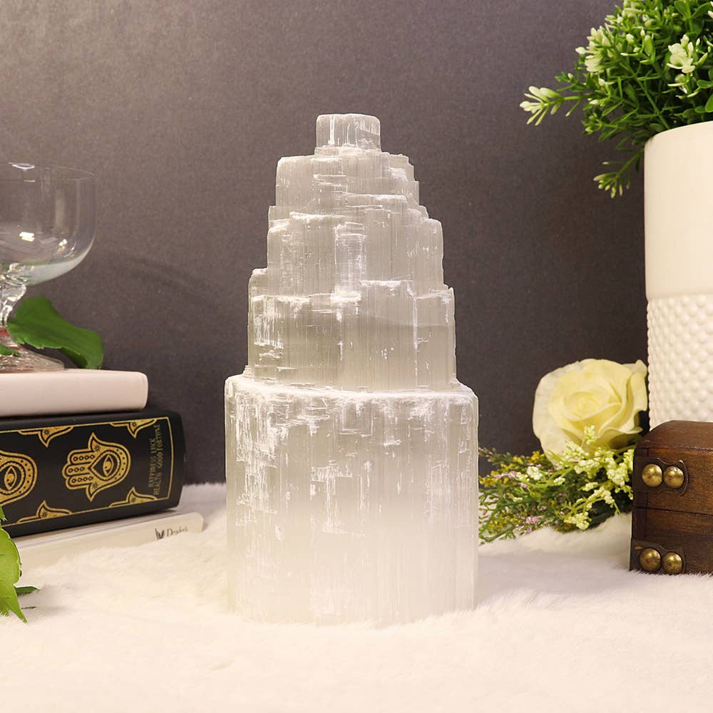 La magnifique tour en spirale en sélénite, avec un éclat perlé, constitue un magnifique objet de décoration dans n'importe quel décor. Chaque tour en spirale est complètement unique et donne une douce lueur blanche lorsqu'elle est éclairée par une boîte à lumière. Avec ses caractéristiques de guérison et de purification profondes, la sélénite protège une personne ou un espace des énergies négatives, et restaure la clarté mentale avec un flux régulier d'énergies positives. La puissante vibration de la sélénite active tous les chakras, en particulier le chakra de la Couronne et le Chakra supérieur. Les propriétés de la sélénite associées aux chakras alignés apaisent calme et sérénité, ce qui le rend idéal pour la méditation, les pratiques de guérison et la croissance spirituelle. Idéal pour être placé à la maison ou au bureau pour purifier l'environnement. La sélénite nettoie, charge et réactive également les bijoux en pierres précieuses et les cristaux placés à proximité. Ajoutez notre collection de sélénites sculptées à la main de qualité supérieure, provenant du Maroc, à votre magasin pour rehausser votre gamme de produits et attirer vos clients.
