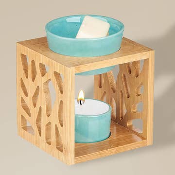 Diffuseur d’huile en bambou avec motifs de trèfles et feuilles, dimensions approximatives : 12 x 12 cm. Ce diffuseur permet de créer un parfum fabuleux et intense dans votre intérieur ! Il suffit de placer une bougie chauffe-plat dans la base et un peu d’huile parfumée ou une pastille parfumée sur le dessus de la lampe. Les huiles et pastilles diffuseront alors leur parfum incomparable. Ces diffuseurs sont parfaits comme source de lumière indirecte tout en apportant une agréable fragrance. Une décoration idéale et un cadeau parfait. Caractéristiques : - Motifs feuilles et trèfles - Aromathérapie - Décoration intérieure et automnale - Compatible avec huiles essentielles - Favorise la relaxation - Écologique - Adapté à la saison d’automne
