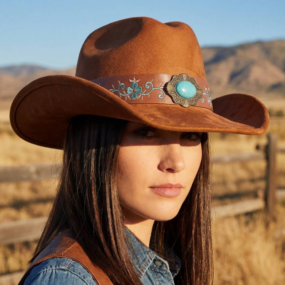 Chapeau de cowboy à lanière superposée avec tête de taureau western en vente B2B