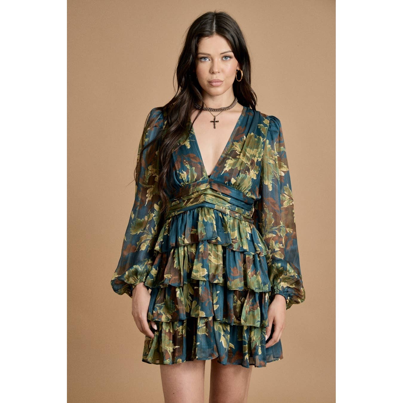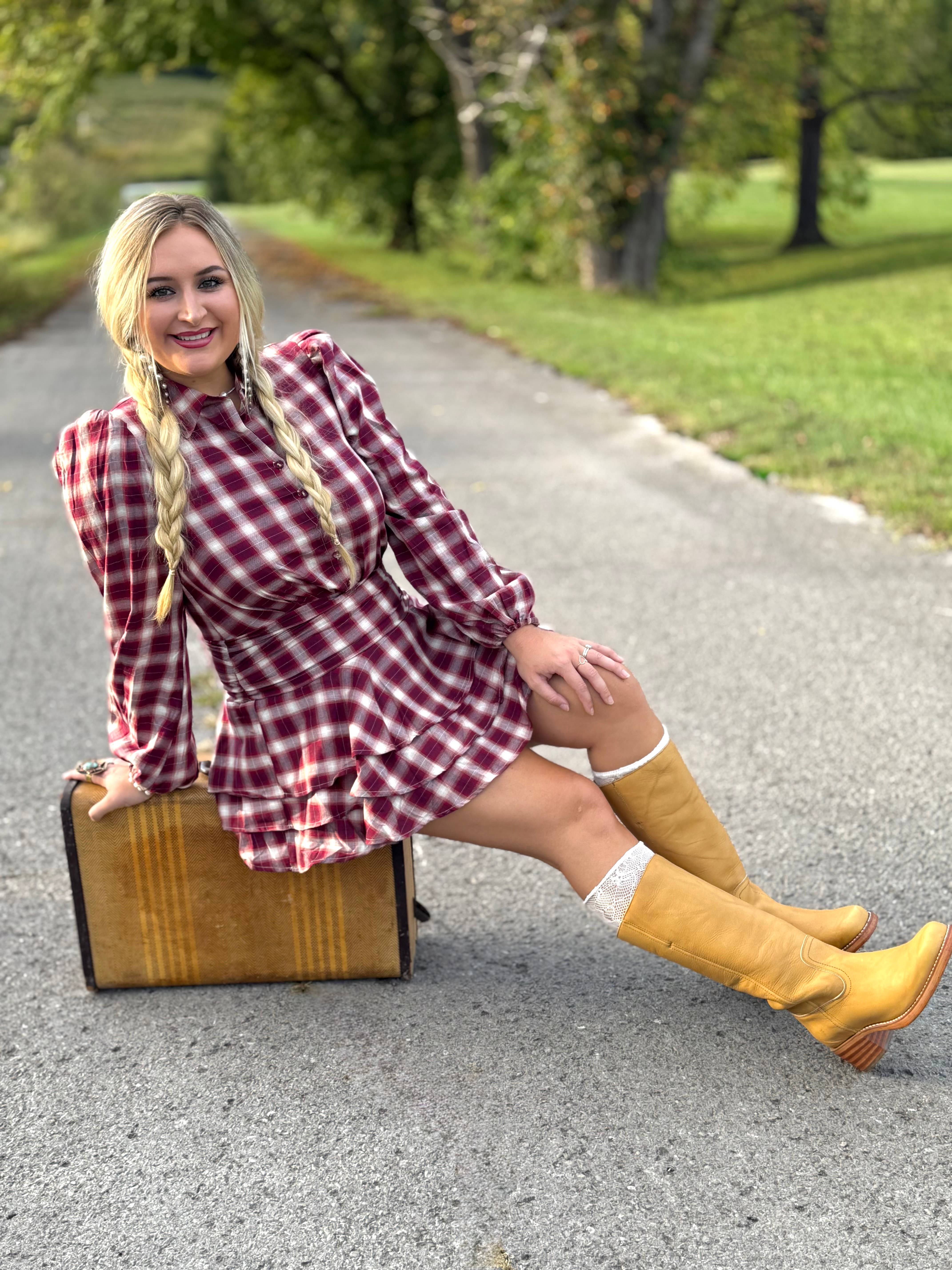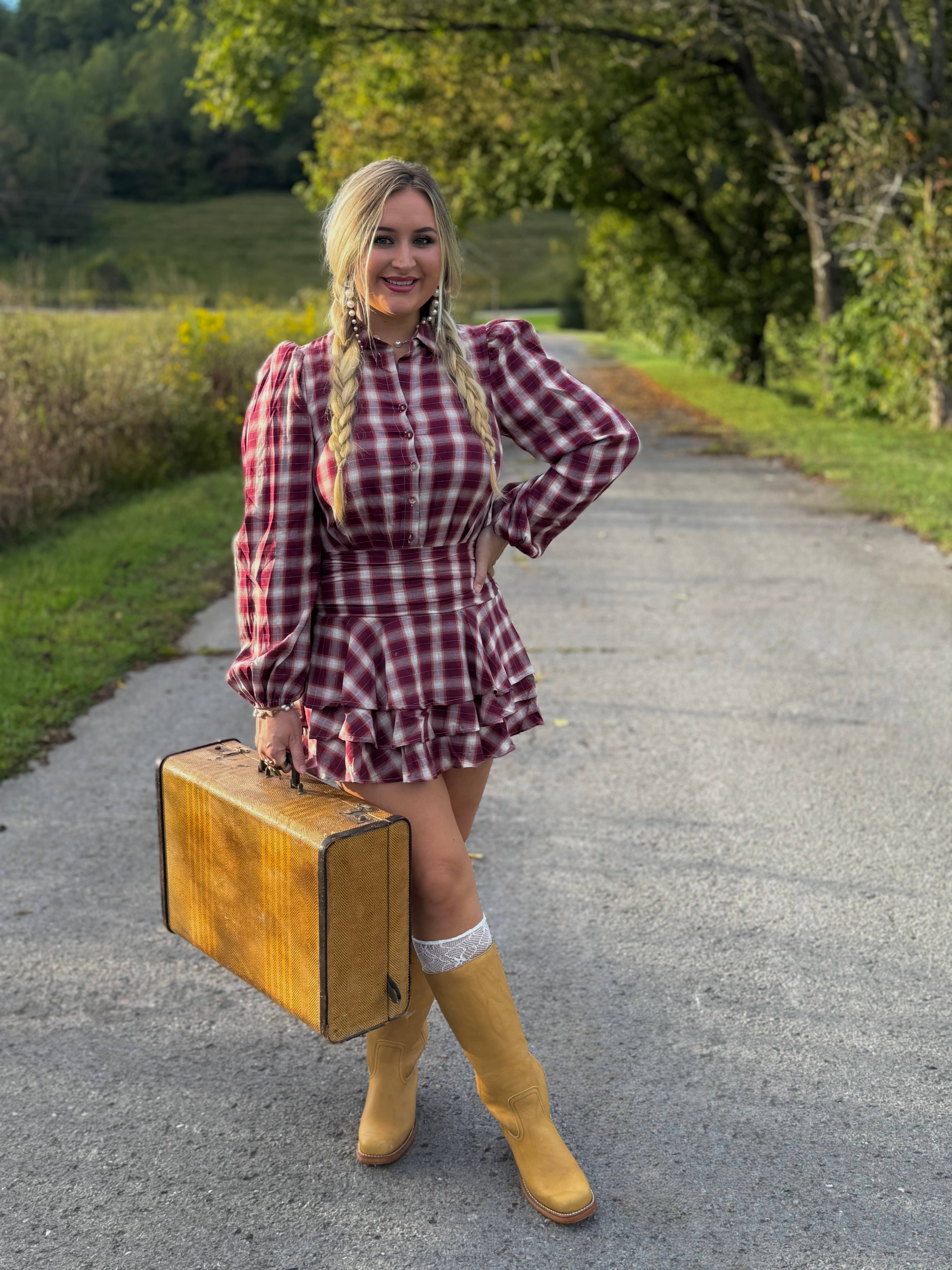 Robe courte à volants en tartan d'automne