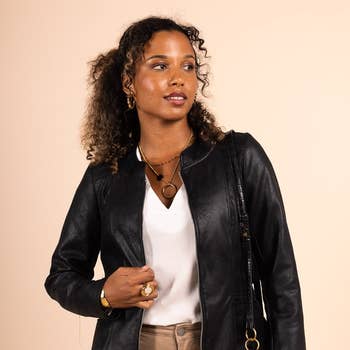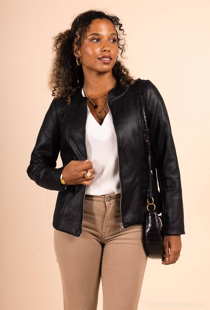 Découvrez une veste courte en cuir d'agneau audacieuse, incarnant l'essence du style rebelle et sophistiqué. Son design cintré et son col à revers confèrent une élégance affirmée, tandis que les pattes d'épaule avec boutons pression ajoutent une touche de caractère. L'ouverture croisée à l'avant, soulignée par une fermeture zippée, crée un contraste saisissant entre la robustesse du cuir et la modernité du design. La fausse poche poitrine apporte une subtile asymétrie, renforçant l'esthétique contemporaine. Les franges sous les manches ajoutent une dimension dynamique et un mouvement fluide. Les motifs étoiles rouges brodés captivent le regard, ajoutant une touche de flair audacieux. À l'arrière, l'inscription "FRONT ROW ONLY" complète l'attitude distinctive de la veste. La doublure en soie offre un confort luxueux, enveloppant chaque mouvement dans une sensation de raffinement. Une pièce qui équilibre avec assurance la rébellion et la sophistication