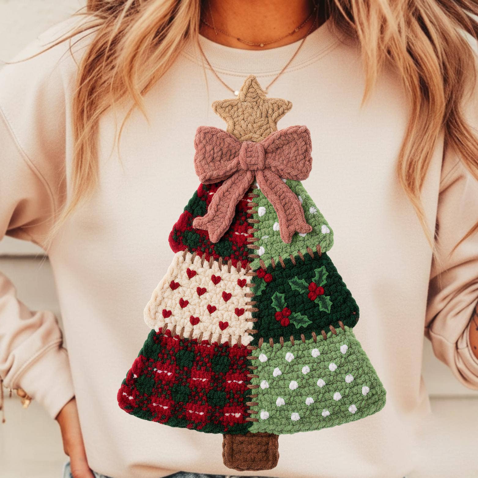 Chemise preppy holly jolly, Sweat-shirt en dentelle de Noël en vente B2B