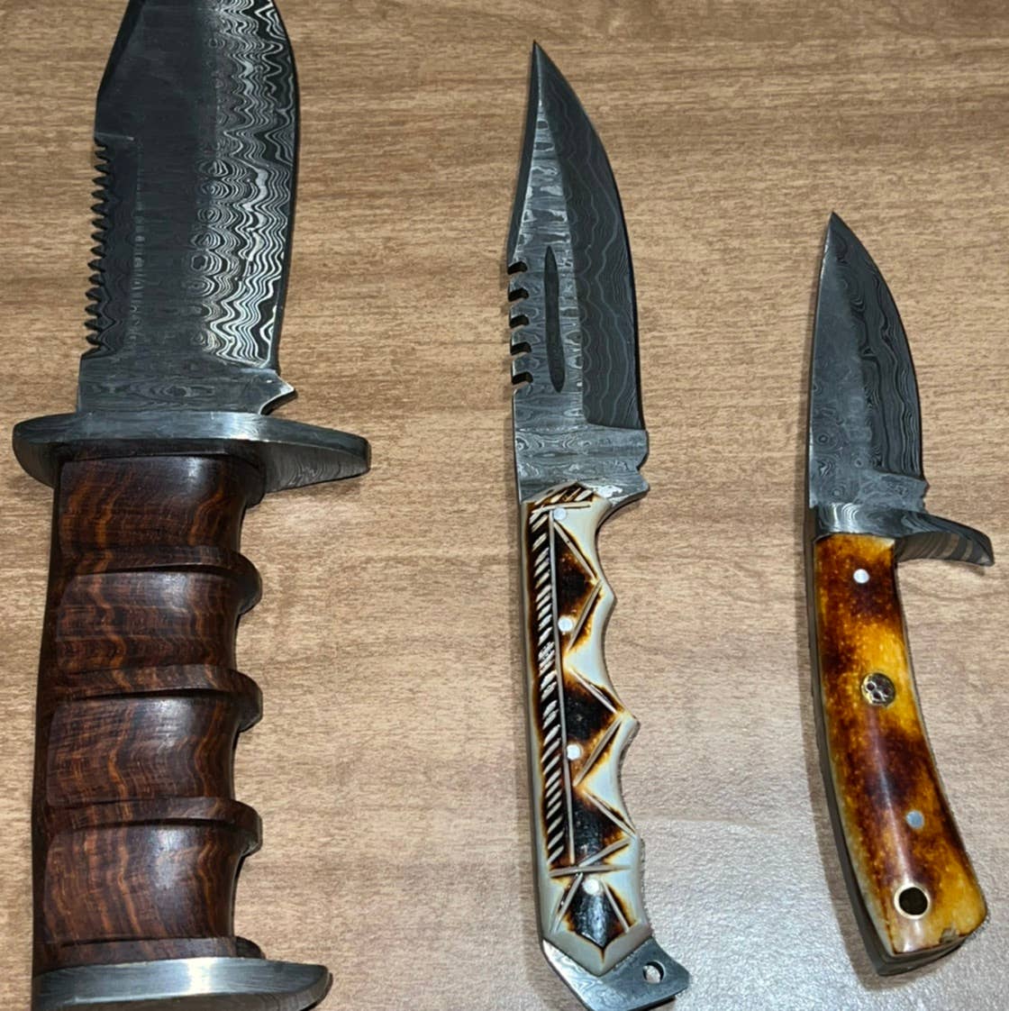 Idéal pour un usage quotidien et même un excellent compagnon pour les voyages en camping ! Matériau de la lame : acier Damas (15N20,1095) Taille de la lame : 4,0 pouces Taille globale : 8,0 pouces Matériau de la poignée : os bleu torché Manche en os teint, nous avons conçu cette lame pour une utilisation quotidienne ! Fourreau personnalisé en cuir de vachette véritable cousu main, usiné à la main avec passant de ceinture et fermetures à bouton-pression en laiton Cette lame est forgée à la main avec de l'acier à haute et faible teneur en carbone 1095 et 15N20. C'est jusqu'à 58 HRC sur l'échelle de Rockwell. Très résistant et durable. Le service client est notre priorité numéro un, contactez-nous via notre compte et nous ferons de notre mieux pour répondre le plus rapidement possible à toutes vos questions.