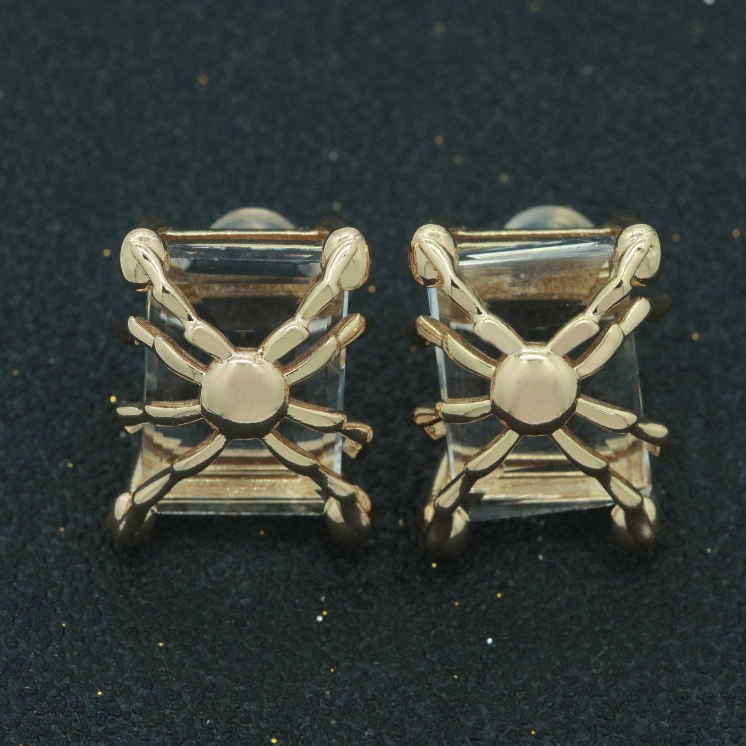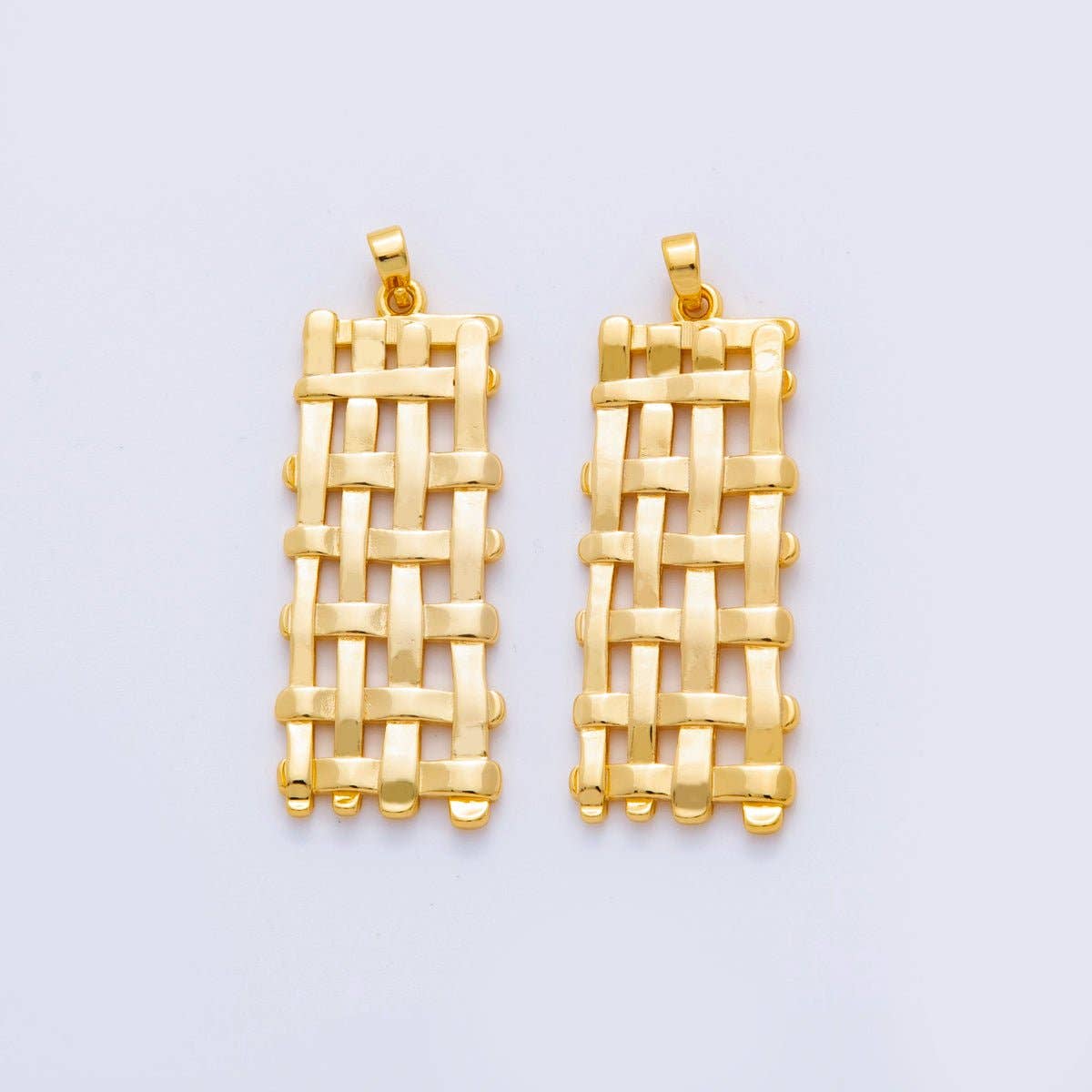 1 paire de délicates breloques à maillons rectangulaires, boucles d'oreilles simples en métal doré, boucles d'oreilles au design moderne, fermeture à motif papillon. Q341 en vente B2B