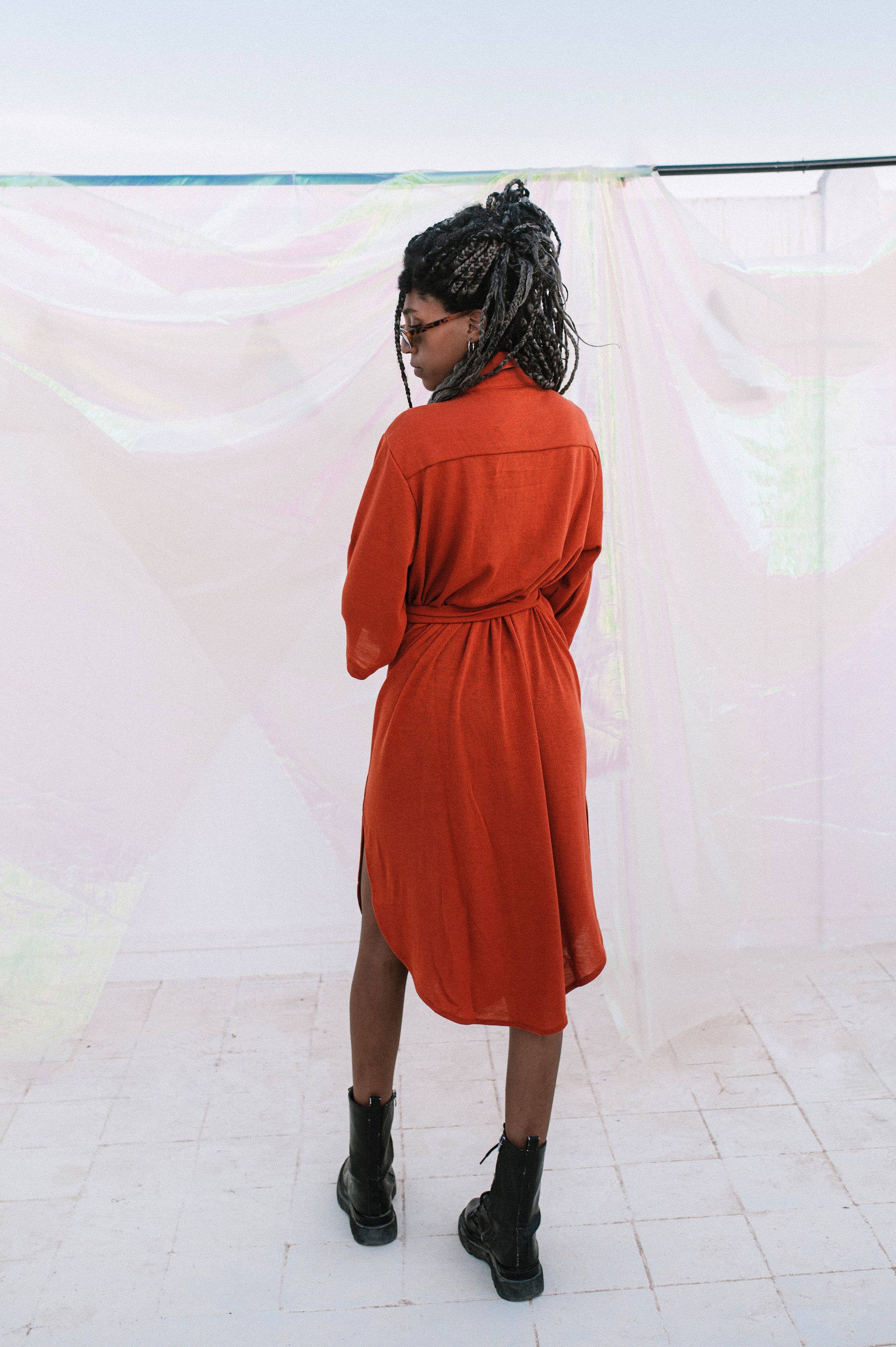 La Cheerful Night Long Dress est féminine mais n’aime pas trop attirer l’attention. On remarque sa discrétion par sa couleur bleu, une couleur sobre, et son petit coté joueuse par l’échancrure du bas. Son charme discret suffit à attirer les regards, nul besoin d’être sophistiquée. Indépendante, elle n’étouffe pas les corps, mais les laisse respirer. Friande d’amitié, elle noue toujours des liens avec sa ceinture, et s’ajuste à chaque taille. Friande d’amour, elle épouse toutes les types de silhouettes. Elle trouve son meilleur repère dans le dressing des fashion-addict ainsi que des femmes engagées pour un monde meilleur.