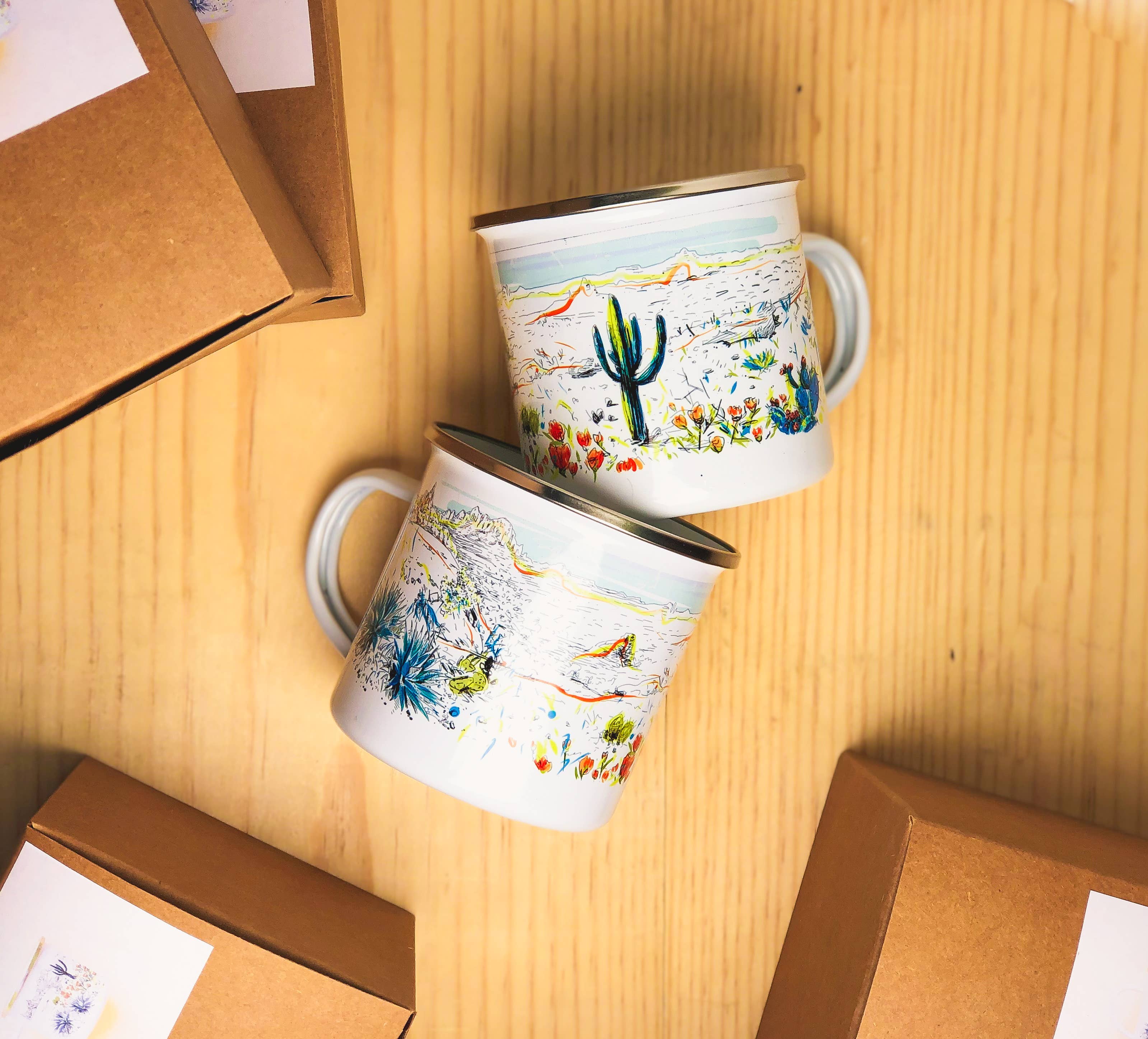 Vous n'êtes peut-être pas en train de faire de la randonnée dans le premier parc national des États-Unis aujourd'hui (ou peut-être que vous l'êtes !) , mais nous voulons que ce mug rappelle que chaque étape difficile vaut toujours la peine d'être franchie, que ce soit en randonnée ou dans la vie ! Que vous escaladiez des montagnes ou que vous naviguiez en banlieue, Couloir est votre compagnon fiable. Imprimés à la main en Arizona, ces mugs sont aussi robustes qu'un Saguaro (indice : ils ne se casseront pas !). Vos tasses peuvent s'écailler, mais les imperfections ajoutent du caractère. Les articles en émail restent toujours propres à la consommation et leur poignée restera intacte. Chaque motif a sa propre histoire qui vous inspirera lors de votre prochaine aventure, qu'il s'agisse de vous perdre dans un nouveau livre sur un canapé douillet ou d'admirer un lever de soleil épique avant une journée de montée. Ces mugs de camping sont des cadeaux parfaits pour les campeurs !