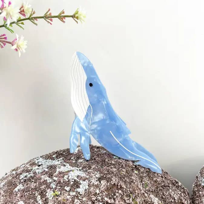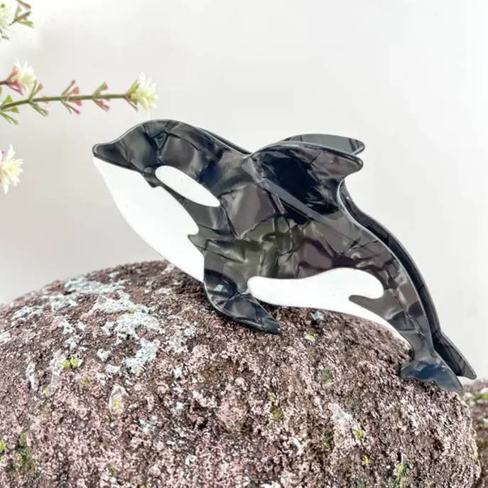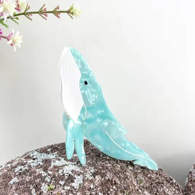Matériau : acétate Processus de fabrication : fait main Dimensions : pieuvre à anneaux bleus 13 cm, petites pieuvres Dumbo 4,7 cm (1,85 pouce) Poids : 45 g, 10 g Description : La "Pince à cheveux pieuvre à anneaux bleus et petites pieuvres Dumbo" est un accessoire fascinant qui met en valeur la beauté intrigante des pieuvres. Cette pince à cheveux présente un motif saisissant de pieuvre à anneaux bleus, reconnue pour ses couleurs vives et ses motifs uniques, accompagné de représentations charmantes de petites pieuvres Dumbo, appréciées pour leurs grandes nageoires ressemblant à des oreilles. Fabriquée avec des matériaux durables, la pince assure une tenue sûre tout en apportant une touche d'élégance et de fantaisie marine à votre coiffure. Idéale pour les amateurs de vie marine et ceux qui aiment les accessoires distinctifs et artistiques, cette pince convient aussi bien pour un usage quotidien que pour des occasions spéciales.