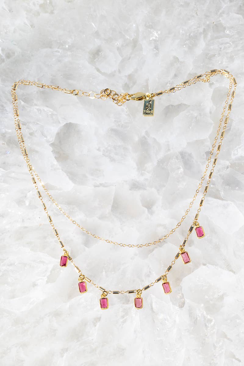 COLLIER AURORA - OR FIN 14 CARATS + QUARTZ TOURMALINE BICOLORE EN VENTE B2B