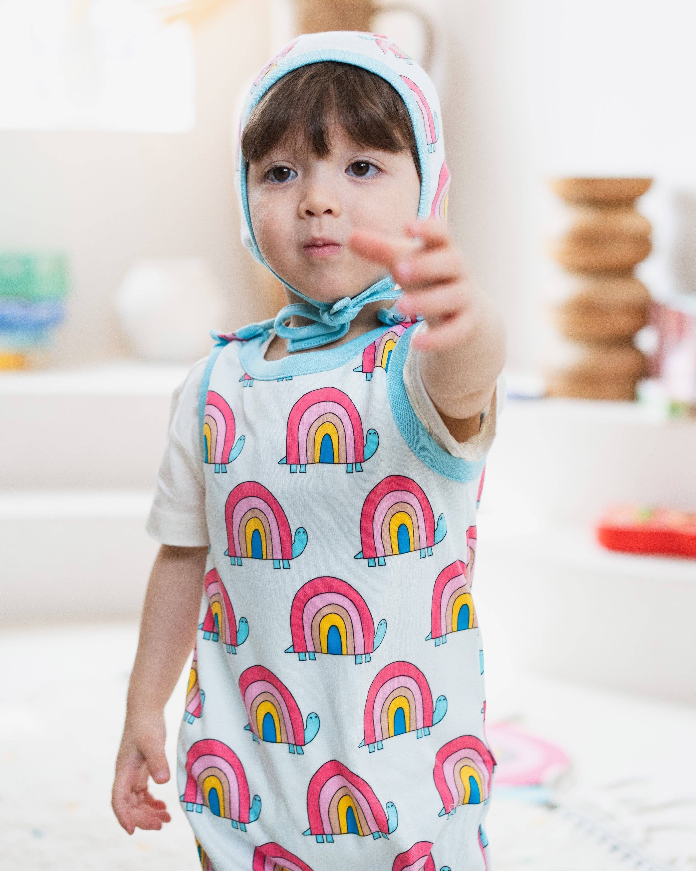 **Pas de tarifs pour les clients américains. Fabriquées en coton biologique certifié GOTS à 100 %, ces adorables salopettes sont douces, extensibles et tellement respirantes—parfaites pour jouer toute la journée ! Un bonnet assorti dans le même imprimé est également disponible. *Les tailles 4-6M, 6-9M et 9-12M sont dotées de boutons-pression en bas pour des changements de couches rapides et faciles. • Fille / Taille : 98cm(38.6"), Poids : 14Kg(31Lbs) portant 2-3Y(T-Shirt), 1-2Y(Pantalon), 2-3Y(Salopette), 2-3Y(Robe), 12-18M(Bonnet) • Garçon / Taille : 88cm(34.6"), Poids : 12Kg(26.5Lbs) portant 18-24M(T-Shirt), 9-12M(Pantalon), 12-18M(Body & Salopette & Bonnet) Tailles standard par hauteur 4-6M : 62-68cm(24.4-26.7") 6-9M : 68-74cm(26.7-29") 9-12M : 74-80cm(29-31.5") 12-18M : 80-86cm(31.5-33.8") 18-24M : 86-92cm(33.8-36.2") 2-3Y : 92-98cm(36.2-38.5") 3-4Y : 98-104cm(38.5-41") 4-5Y : 104-110cm(41-42.3") 5-6Y : 110-116cm(42.3-45.6") *Laver à la main à l'envers (en dessous de 40°C) avec des couleurs similaires. Ne pas sécher en machine ni utiliser de javel.
