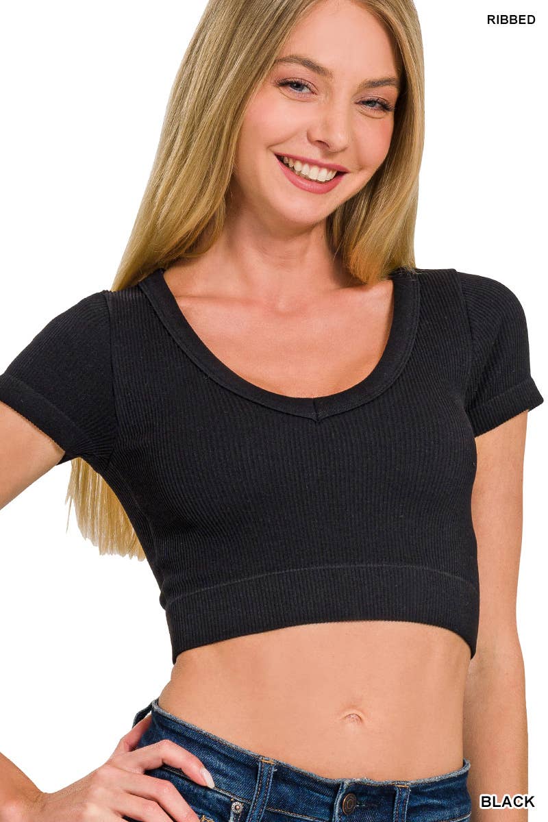 .DÉBARDEUR COURT À CÔTES LAVÉES AVEC DÉCOLLETÉ EN V ET SOUTIEN-GORGE AMOVIBLE