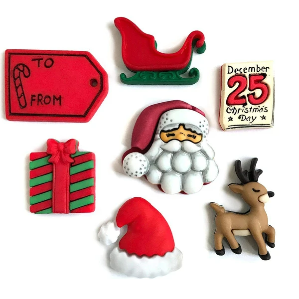 Candy Cane Lane fait partie des boutons de Noël pour la couture et l'artisanat de Buttons Galore and More. Ces boutons sur le thème des fêtes sont parfaits pour embellir les vêtements, les téléphones portables, les chaussures, les couettes, les cadres photo, les pages de scrapbooking, les œuvres d'art à l'aiguille et tous vos bricolages de Noël. Teints à la main et emballés aux États-Unis, nos boutons vous aideront à rendre votre bricolage de Noël spécial. Comprend 9 boutons assortis en forme de jarret de Noël par paquet (boucle au dos). La gamme de tailles est de 7,5 à 1 pouce. Nous pouvons parfois remplacer un bouton en rupture de stock par un bouton similaire de valeur égale.