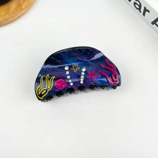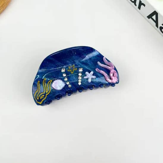 Pince à cheveux truite bleue et blanche, pince à cheveux poisson en acétate en vente B2B