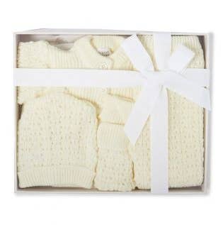 Ensemble layette tricotée rose 4 pièces en coffret