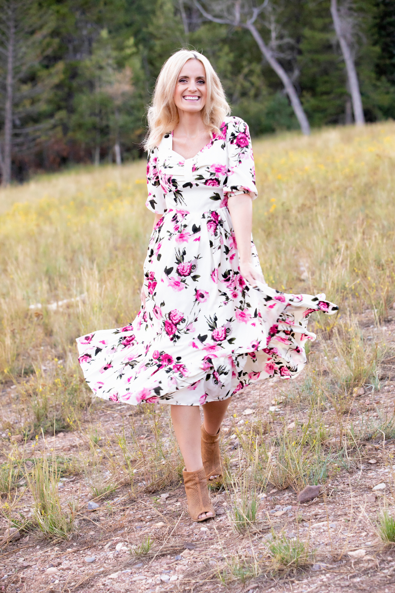 Robe midi Verona bleue à fleurs