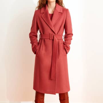 Faites sensation avec ce magnifique manteau long doté d'un devant boutonné, d'un large col et d'une taille nouée. Conçu avec une coupe légèrement oversize, il est parfait pour être superposé pendant les mois les plus froids et sa teinte rouge bordeaux en fait une pièce unique où qu'elle aille. Portez-le sur un pantalon ajusté pour un look chic et sophistiqué, ou associez-le à une robe nuisette pour être tendance. Détails : Manteau long en laine. Fermeture boutonnée sur le devant. Ceinture à nouer. Tissu et entretien : * 100 % laine * Nettoyage à sec Taille et coupe : * Modèle en taille S * Dimensions du modèle : hauteur 5'7"/174 cm - tour de taille 58cm - buste 33"C/84C - hanches 34 po/86 cm - entrejambe 86,4 cm * Taille S : longueur 41,7 po/106 cm - buste 122 cm * Taille M : longueur 107 cm - poitrine 50 po/126 cm