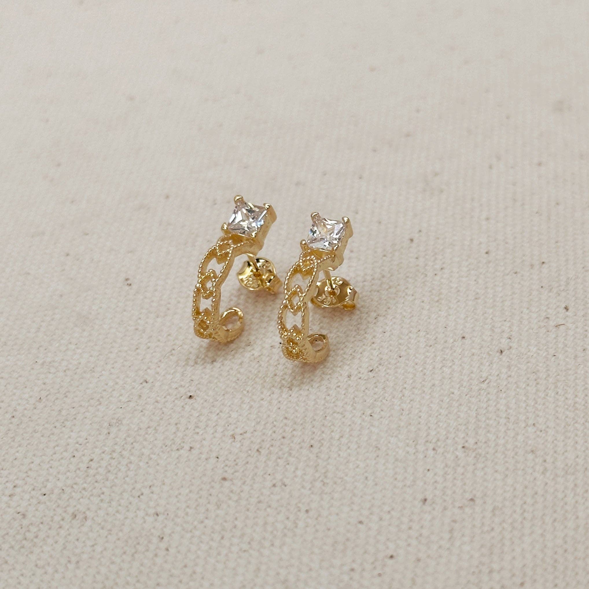 Le produit Mini-créoles torsadées remplies d'or 18 carats avec breloque en zircone cubique n'a pas encore reçu d'avis.