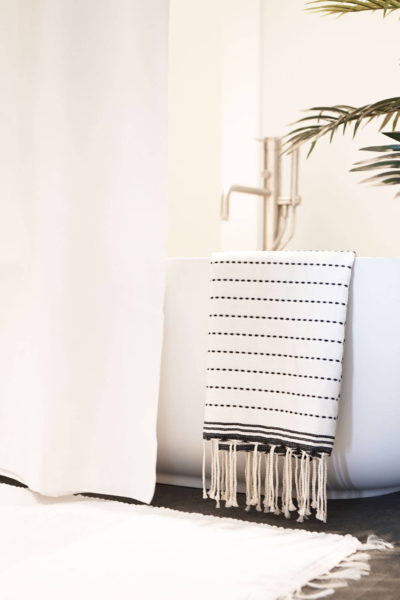 Le mélange de fibres de coton et de bambou crée une sensation élégante et incomparablement douce pour une couverture très confortable, une couverture de plage, une couverture de lit, un couvre-lit ou une nappe.. une pièce éclectique et élégante pour les coins préférés de votre maison... les possibilités sont infinies. 70% bambou 30% coton 100x60" Disponible en 3 couleurs. Quantités limitées Instructions de lavage : lavage en machine à froid et séchage cycle délicat.