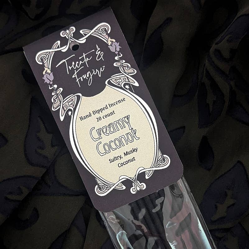 Toccata & Fougère utilise des pratiques de gestion de stock allégées pour garantir que nos clients reçoivent l'encens le plus frais possible. Les commandes en gros sont réalisées sur commande et nécessitent un délai de 45 à 60 jours. Notre encens est tout aussi beau sur un support mural que dans un vase en verre transparent. Recommandé pour : boutiques vintage et antiquaires, fleuristes, boutiques gothiques et romantiques, librairies et salons. Les bâtonnets mesurent 11" de long et utilisent du charbon noir pour une combustion propre. Texte suggéré pour l'utilisation par les vendeurs : JASMIN - Jasmin enivrant avec Plumeria et Ambre Remplissez votre maison des senteurs envoûtantes des Paquets d'Encens Trempés à la Main Toccata & Fougère™. Chaque paquet contient 20 bâtonnets d'encens, chacun prenant environ une heure à brûler - juste ce qu'il vous faut pour ajouter la touche finale parfaite à votre espace. Trempé à la main aux États-Unis.