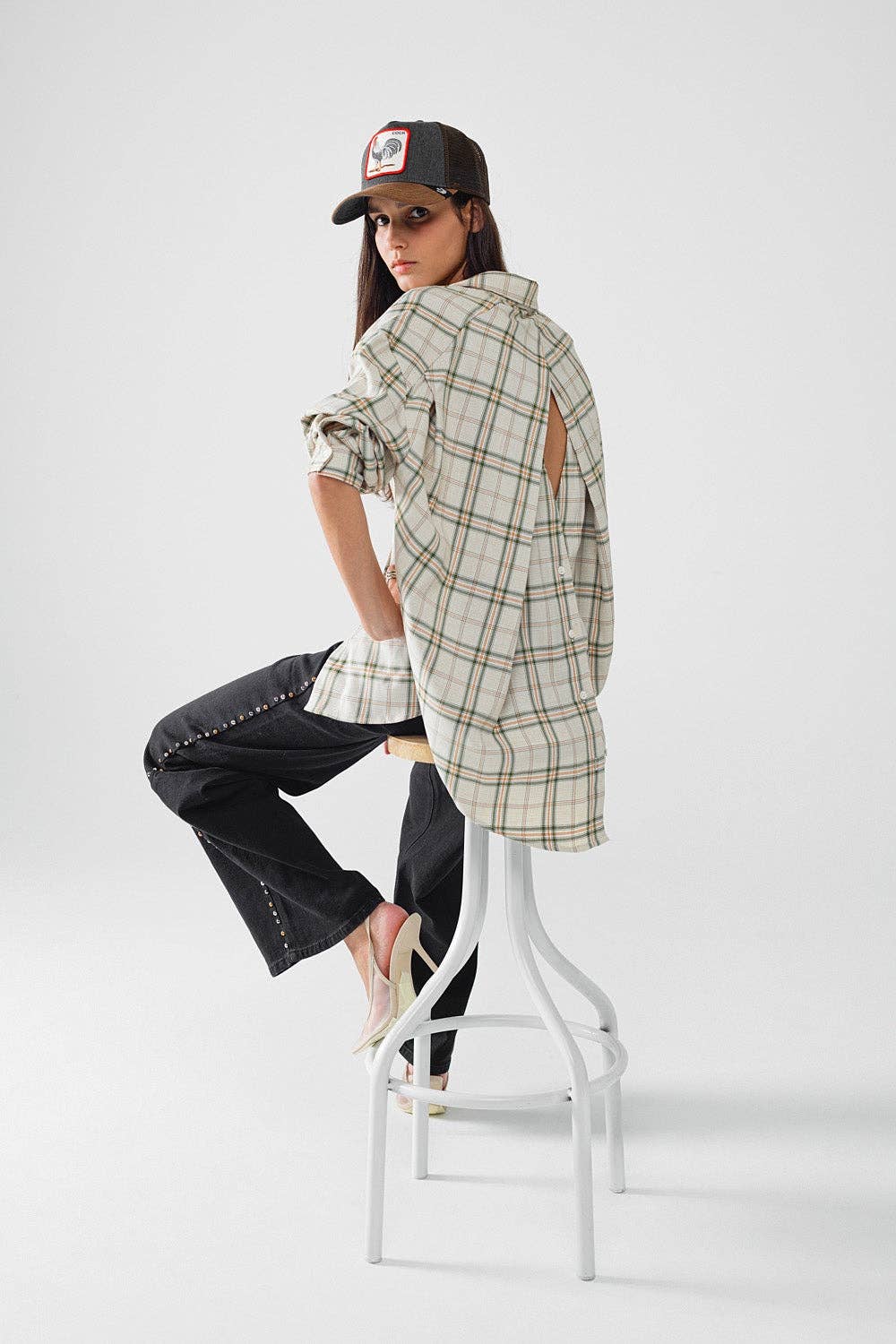 Chemise à carreaux rétro à coupe ample avec boutons en vente B2B