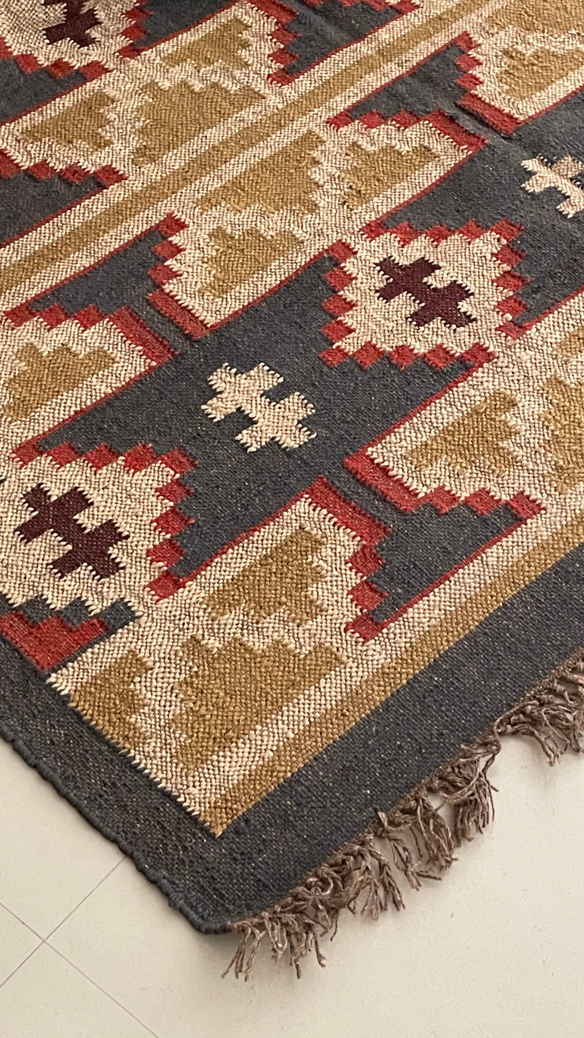 Célèbres pour leurs couleurs riches, leurs tons chauds et leurs beaux motifs ethniques, ces tapis tissés à plat incarnent un splendide mélange de cultures : les Grecs, les Arméniens, les Kurdes, les Assyriens et les Turcs ont tous contribué à l'histoire du kilim. Le tapis est entièrement fabriqué à la main, de la teinture au nœud final du tissage, sur un métier à tisser traditionnel dans notre atelier de tissage. Matériau 70 % jute, 30 % laine taille 4 x 6 pi ; 120 x 180 cm ; 48 x 72 po Soins Nettoyage à sec Nettoyage des taches à l'aide d'un chiffon humide Brosse pour poussière et poils d'animaux Utilisez un détergent doux pour les taches, puis testez d'abord sur une petite surface peu visible Après chaque commande, le tapis est fabriqué avec amour et soin dans notre atelier de tissage au Rajasthan, en Inde, afin d'éviter le stockage inutile et le gaspillage de ressources (teintures, fils, eau, etc.) 💌 Vous n'avez rien trouvé de meilleur ? Faites-nous créer quelque chose d'exclusif pour votre magasin.