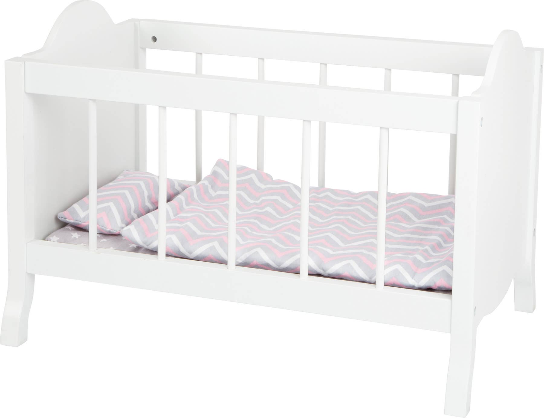 Lit de poupée en bois blanc avec literie étoilée