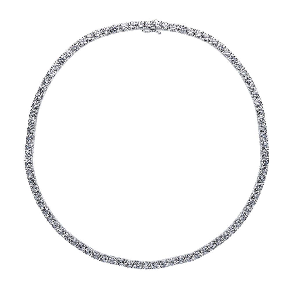 Ce collier de tennis tendance ajoutera une touche sophistiquée à votre décolleté grâce à sa gamme scintillante de pierres brillantes. Fabriqué en argent sterling 925 fin, sans nickel. Serti de zircone cubique ronde CZ (4 mm) de qualité supérieure de 25 carats, serti à griffes. La chaîne mesure 17 pouces de longueur et 5 mm de largeur. Boîte avec languette et fermoir de sécurité. Importé.