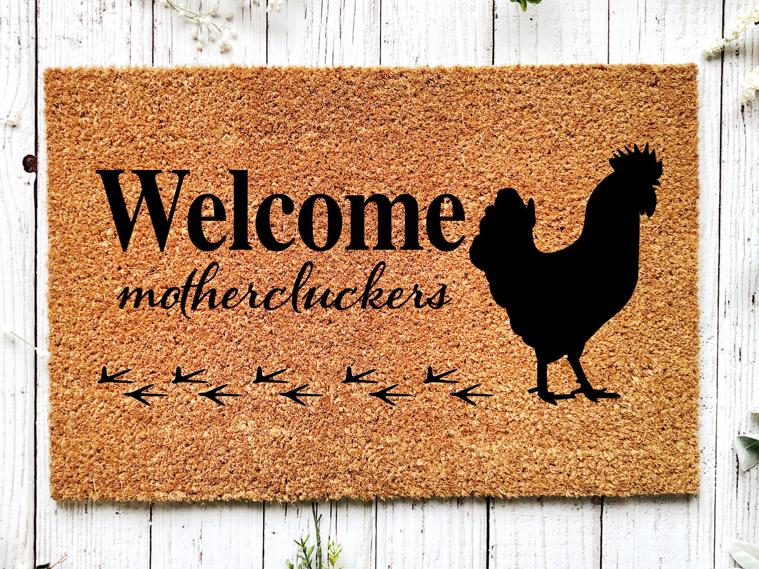 Nos paillassons 18x30 sont des cadeaux personnalisés parfaits et disposent d'un dos antidérapant, avec une face avant en fibre de coco naturelle. Nous utilisons une encre UV durcie de haute qualité qui aide à prévenir la décoloration. L'encre UV se fixe directement sur chaque fibre du paillasson. Avec notre procédé, aucun vinyle n'est impliqué, il n'y aura donc pas de pelage. Tous les paillassons se décolorent après une exposition à l'eau et un trafic intense. Par conséquent, pour prolonger la durée de vie de votre paillasson, je vous recommande de le conserver dans un endroit sec et couvert. Pour nettoyer votre paillasson, il suffit de secouer ou d'aspirer les débris. Dimensions des paillassons : 18 x 30 x 0,6 cm (chaque tapis varie légèrement en profondeur) Points à noter : Pour nettoyer le tapis, secouez-le et/ou balayez avec un balai.