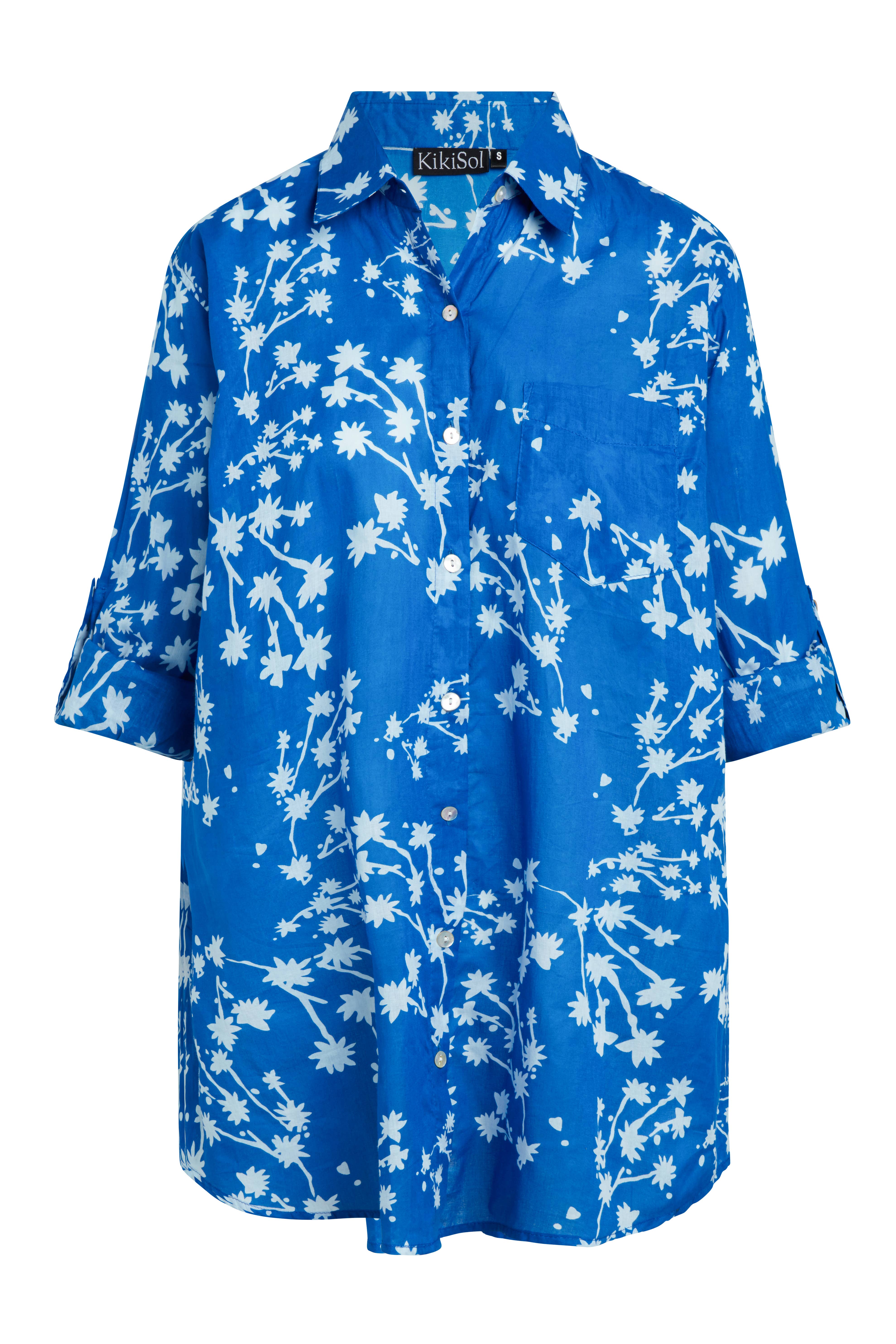 Chemise pour petit ami KikiSol Palm Geo bleu sarcelle et crème petit = 4/6 moyen = 8/10 grand = 10/12 xl = 12/14 xxl = 14/16