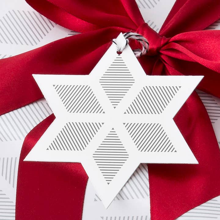 RENNE AVEC DES ORNEMENTS ÉTIQUETTES CADEAUX Lot de 8 Étiquettes Cadeaux ! DÉTAILS : Imprimé sur papier durable de qualité supérieure certifié FCS. Les étiquettes ont un trou pré-découpé et sont enfilées avec de la ficelle. Emballé dans un sachet en acétate transparent par lots de 8. Imprimé à l'encre argentée. Taille : 2,75 po l x 4,25 po h.