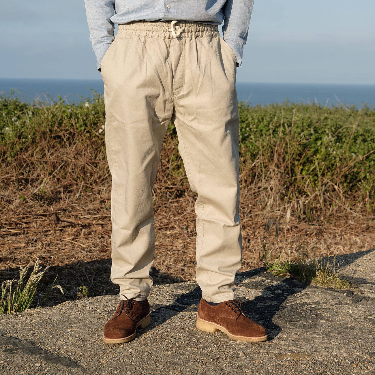 Nos pantalons Deck présentent une taille à cordon de serrage et sont légèrement fuselés à partir du genou. Parfaits pour un look habillé ou décontracté, ils sont les compagnons de voyage idéaux. Disponibles en noir, indigo et tabac. L'histoire Ces pantalons Deck figurent dans notre catalogue de 1969.
